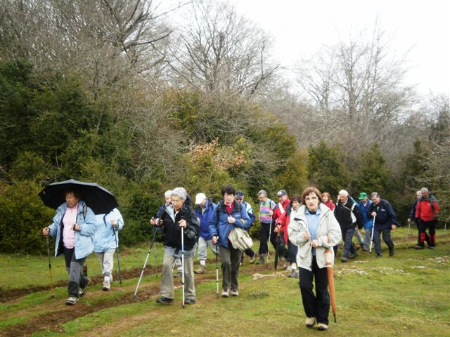 A finales de Octubre del año pasado ya acabamos nuestra salida en Abárzuza descendiendo desde la Trinidad de Iturgoyen. Hoy lo hemos hecho desde el valle de Améscoa Baja. Concretamente desde el pueblo de Artaza. Aquí hemos descendido los grupos de Media y Montaña. Juntos hemos cogido la carretera de Urra y nos hemos separado a unos trescientos metros. Los de Media para coger la pista que nos ha llevado hacia el Blanquizal. Larga subida que nos ha conducido al alto de Larraitza primero y luego a las Peñas de Echávarri. En ellas hemos gozado de unas impresionantes vistas pues en esos momentos estaba bastante despejado. De aquí hemos retrocedido para coger la pista del hayedo, aún con visibles muestras de su letargo invernal, e ir bajando por ella hasta llegar a Abárzuza a las 13,45h.