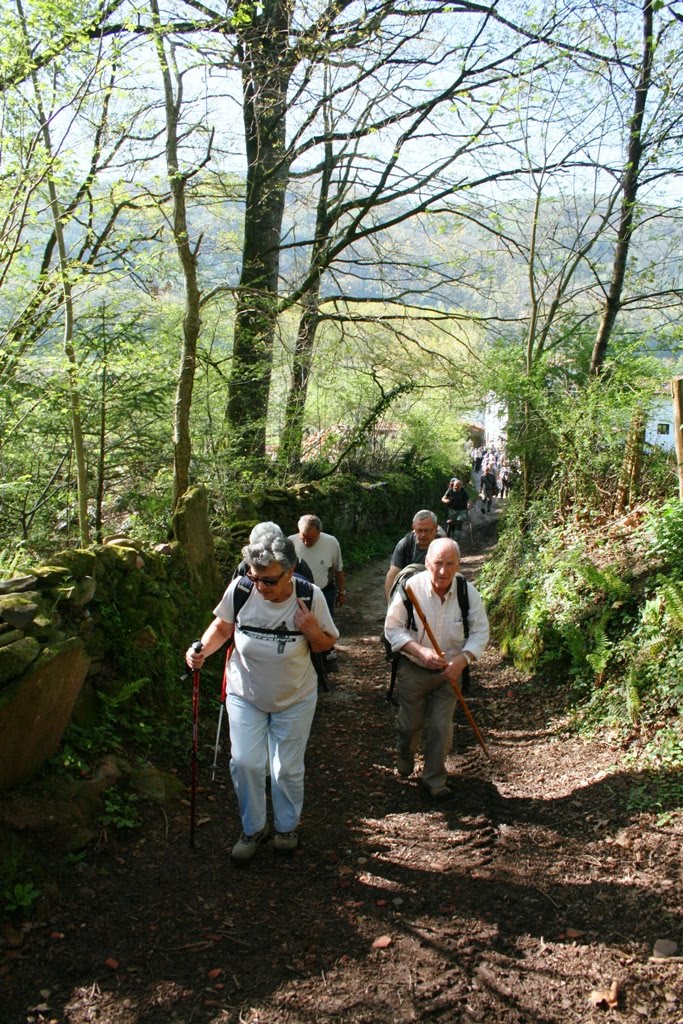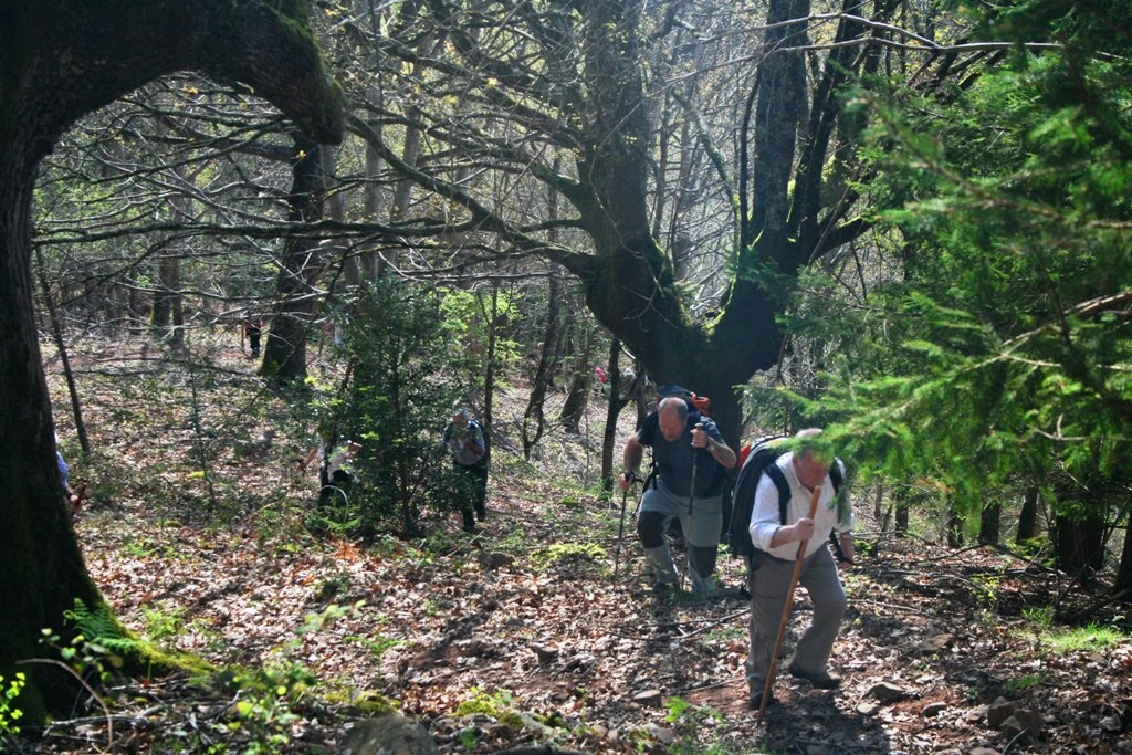 Los de Baja visitan en Bertiz varias demostraciones de antiguos oficios (carbonera, calera, horno…) y por pista dejan Oronotz, atraviesan Legasa y llegan a Doneztebe/Santesteban.