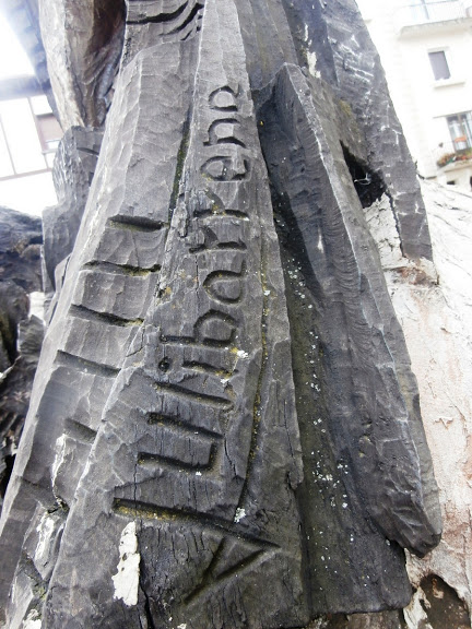 Fueros y realizada con el antiguo nogal que estaba en la misma plaza por el