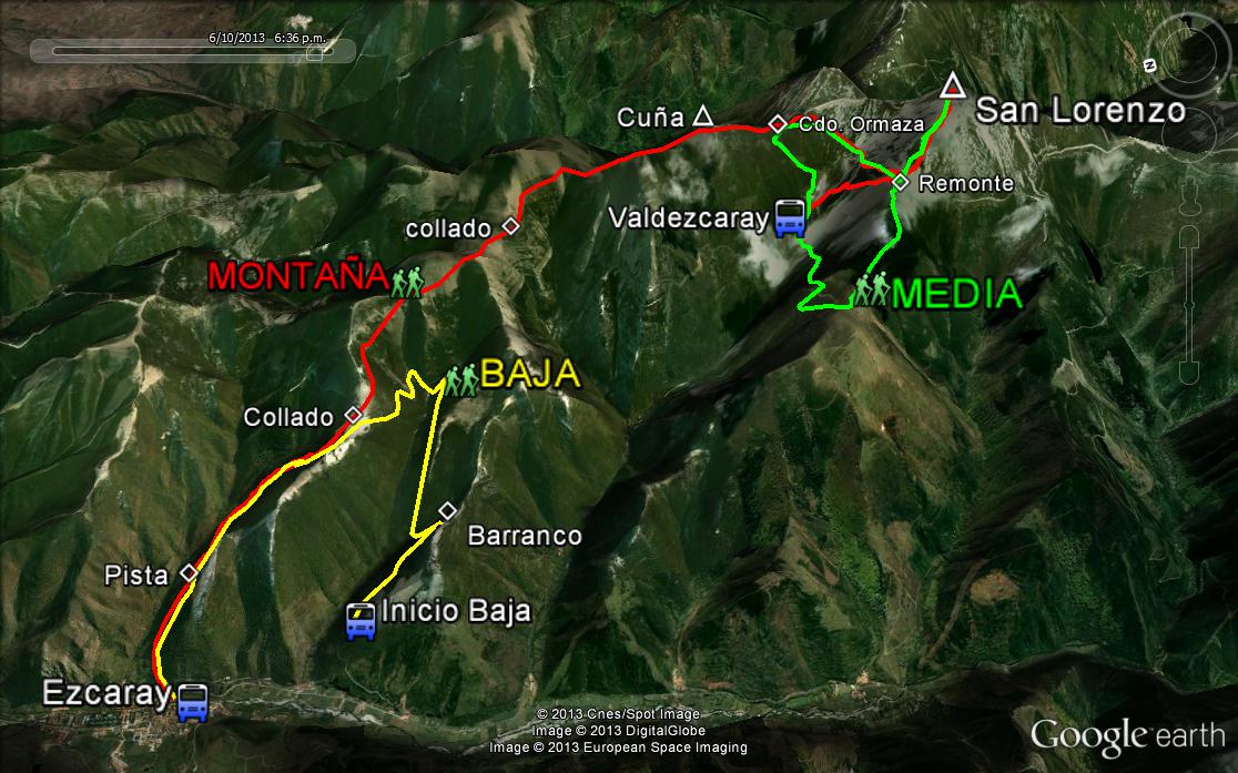 El grupo de MEDIA , en la Estación Invernal empieza, su andadura por la carretera. Luego toman pista a la izquierda por ella llegan hasta un telesilla, aquí empieza el ascenso por sendero hasta la cima de San Lorenzo, baja por el mismo, hasta el telesilla, aquí toma la pista de esqui hasta el collado Ormaza, toma senda a la izquierda y sigue hacia el aparcamiento de la estación de esqui donde termina el recorrido.