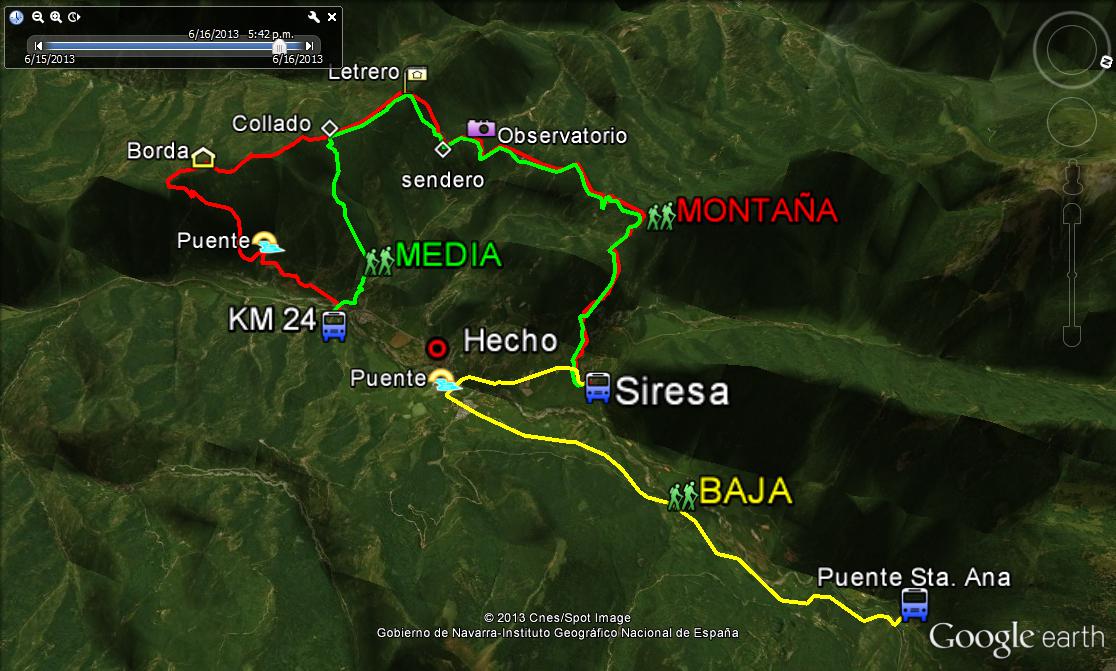 de Gabardito. Luego cogerán una pista a la derecha que les conduce al pueblo de Hecho. A la entrada del pueblo cruzan un puente y toman la carretera a Siresa.
