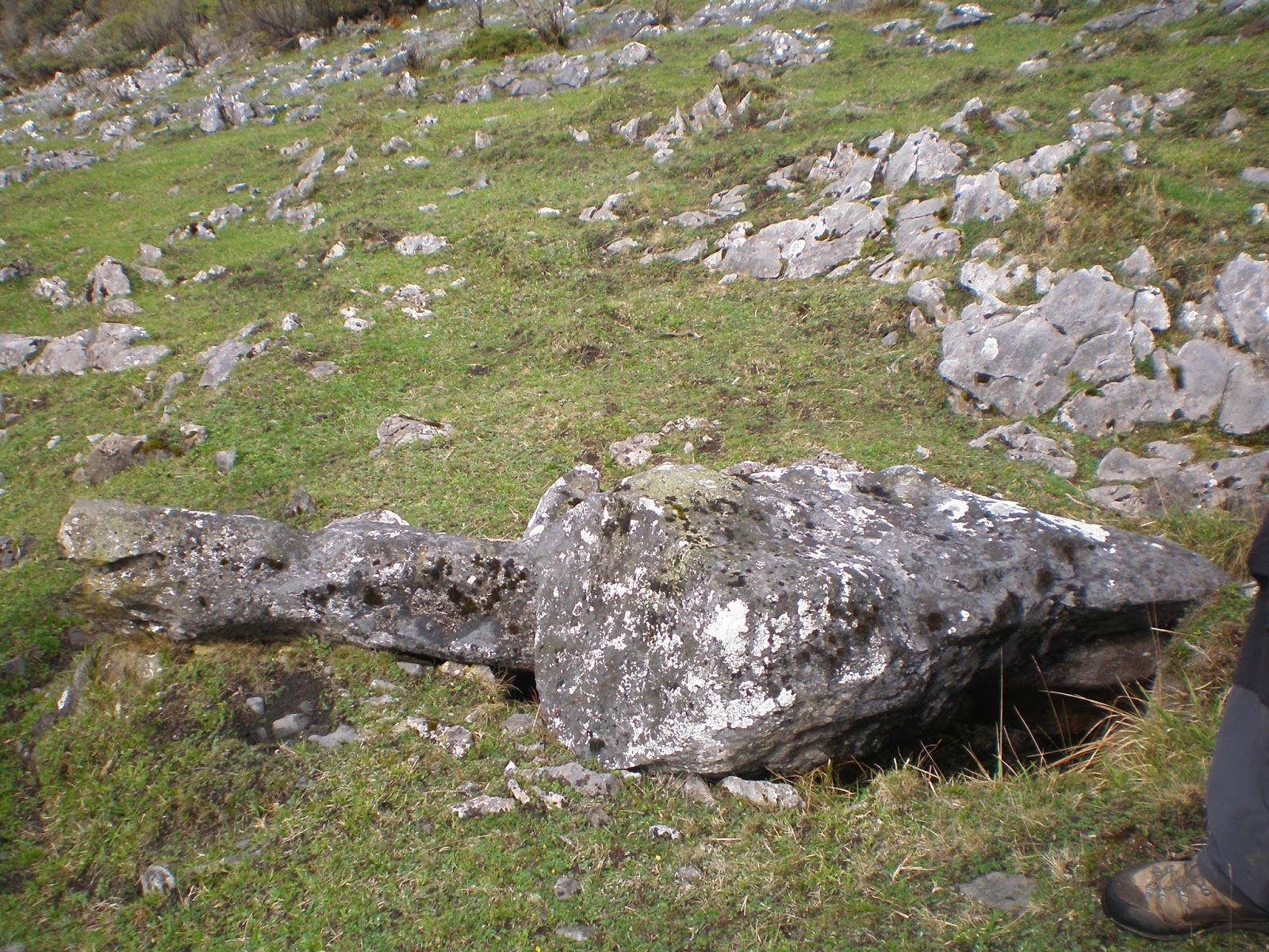 halla tapada con una piedra caliza que mide 2,80m. de largo, 0,40 de ancho y