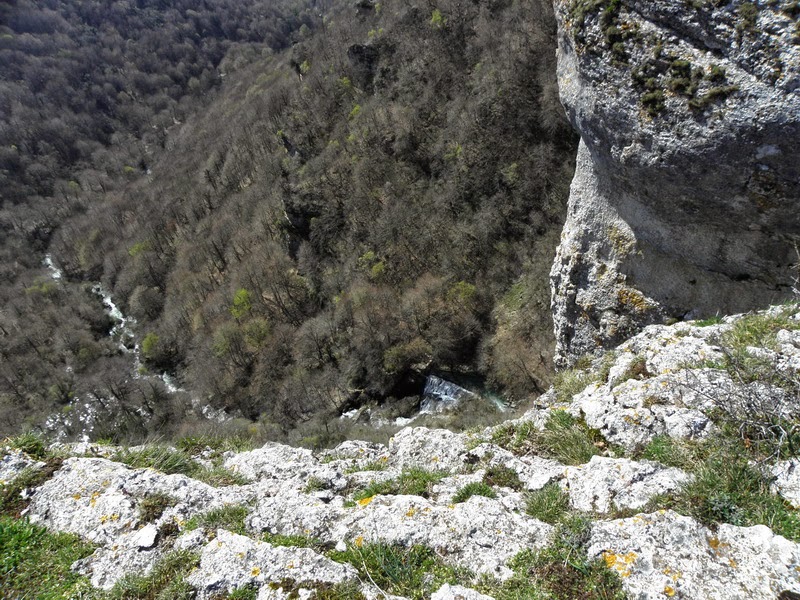 entre pequeñas rocas, llega a una vaguada y por ella llega al camping de Urbasa