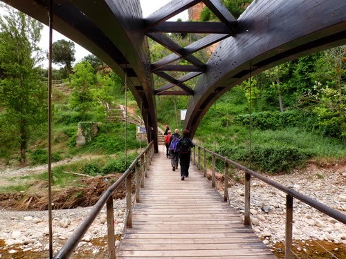 una pasarela y gira a la derecha y por la orilla del río llega a Arnedo donde