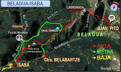 los Contrabandistas, y collado de Ardibidigainea e  iniciar un fuerte descenso de unos 3km hasta