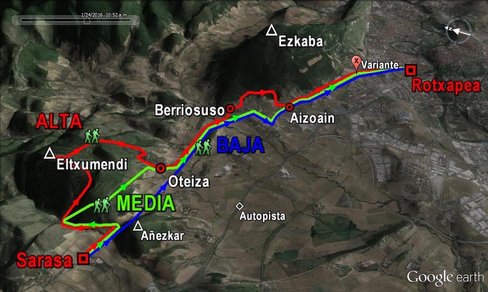 variante y ya por paseo peatonal, llega a la Rotxapea.