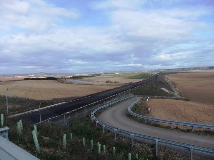 la línea del Ave ahora convertido en carril bici, y otro sobre la autopista.