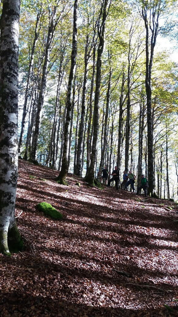 y por senda poco definida entre hayas llegaremos a una langa, la cruzamos y