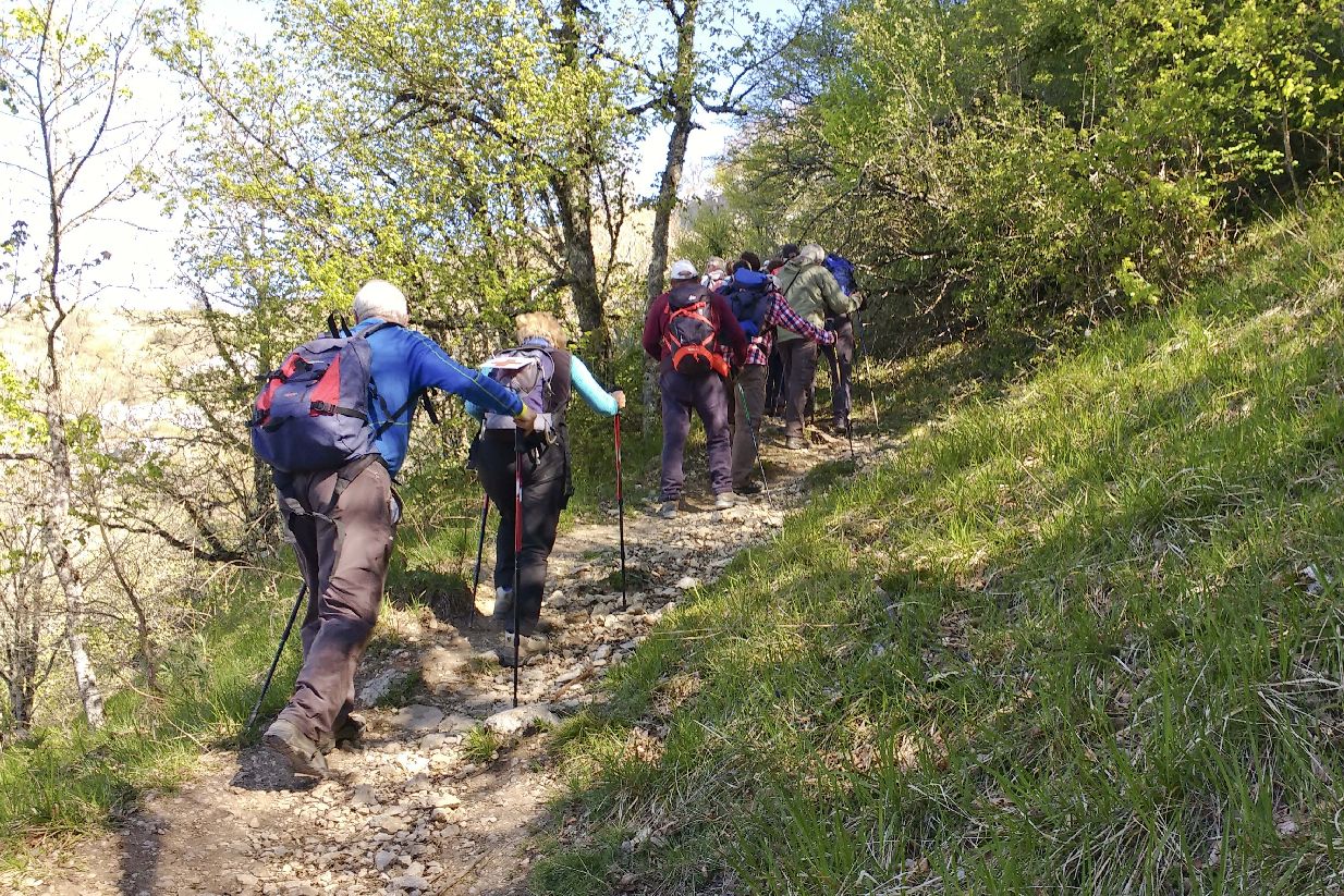 El grupo de ALTA sale de Baquedano por la pista que baja