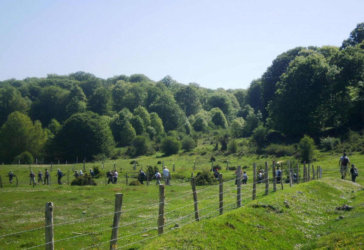Los de Montaña desde la ermita se encaminan al monte Aitzluze de 1.070 m y vuelven a la ermita para llegar al camping por los mismos encantadores lugares que los de media.