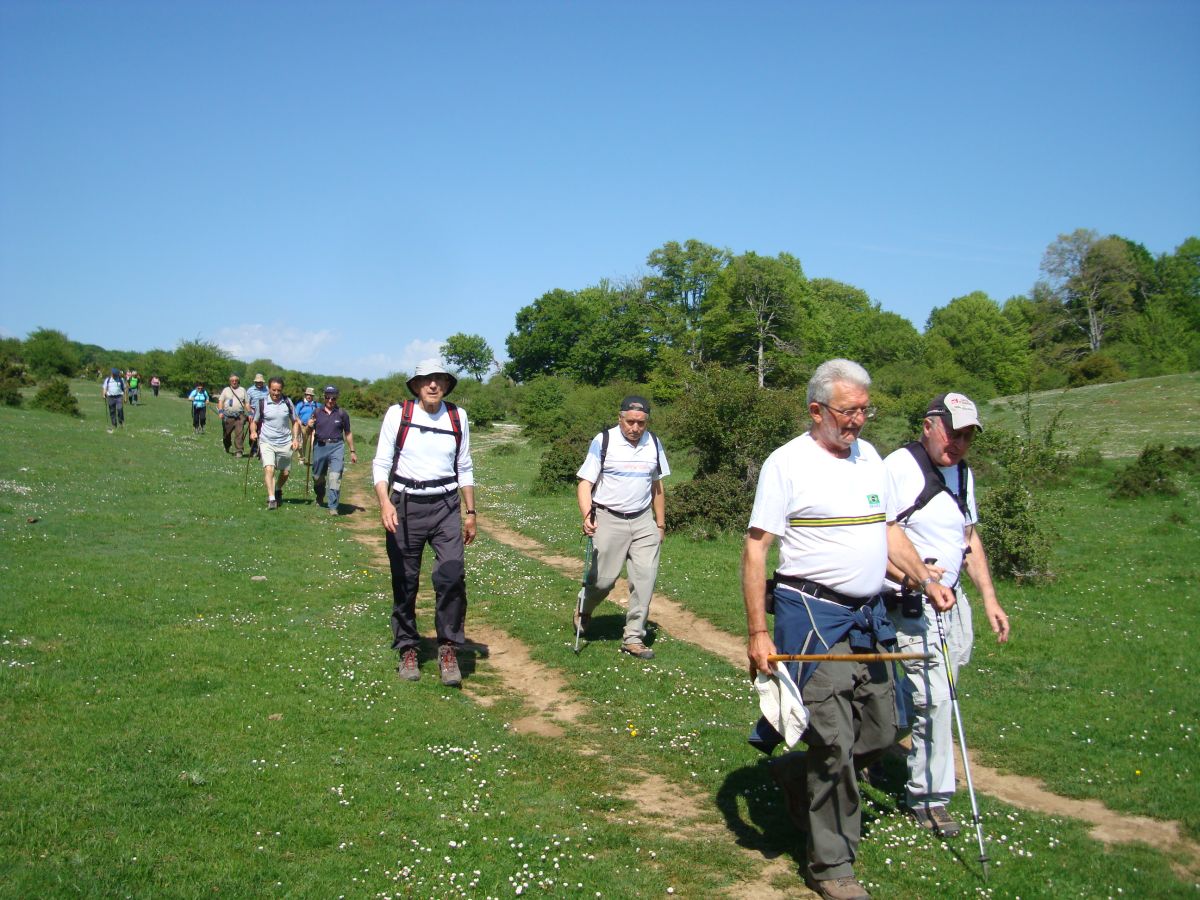 Los de montaña y media inician la subida a la sierra de Urbasa desde el mismo Larraona y por una fuerte pendiente que atacamos en frío, llegamos a la ermita de San Benito donde después de un breve descanso, los de media se encaminan al camping por unos parajes idílicos y por buenas pistas, atravesando la carretera de Brecha Negra y pasando junto a las bordas de Lizarugi.