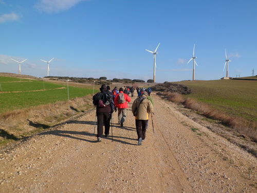 molinos del Parque Eólico de Moncayuelo. Después de pasar cerca de alguna