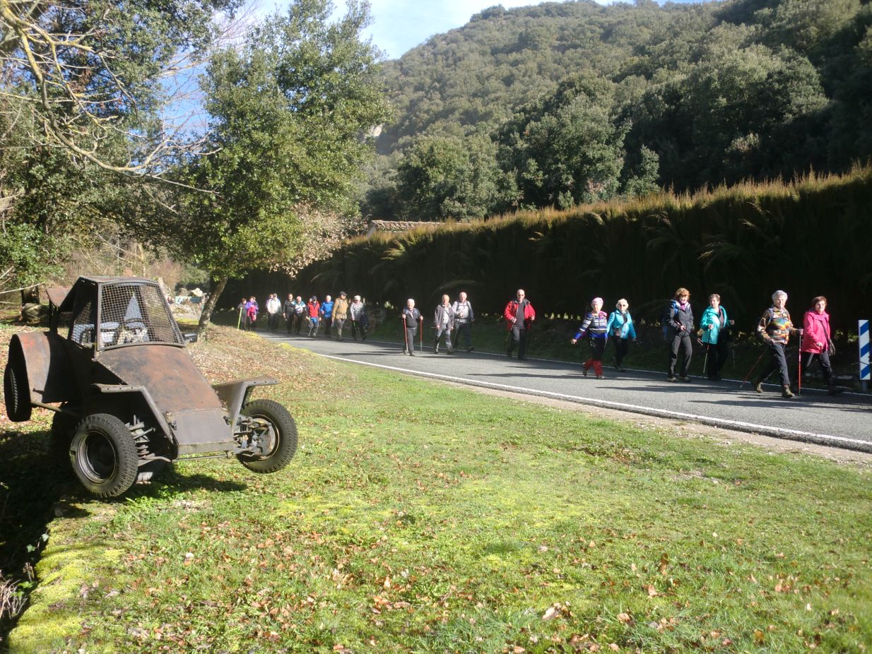 El grupo de ALTA sale del monasterio por una pista, paralela al rio Irantzu, durante 2 km. Se toma sendero a la izquierda, en constante ascenso, teniendo vistas a nuestra espalda hacia el desfiladero o  garganta. Se entra en una zona de senderos cubiertos por bog, pero limpios.