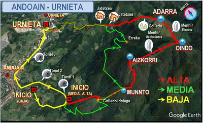 montes: Buruntza (439 m), Belkoain (488 m), Aizkorri (598 m), Usobelartza (647