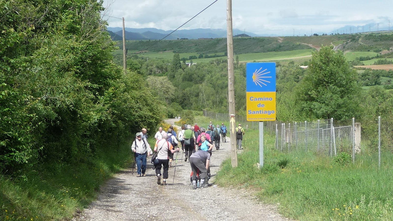 El grupo de BAJA iniciaremos la marcha por el camino de los miradores, marcado por postes, y al poco saldremos a la carretera por el camino de Santiago. Deberemos ir por la derecha siguiendo las marcas y en seguida nos volveremos a meter en camino, a la par de un canal, hasta pasar por debajo de un puente de autovía en construcción, donde haremos una curva cerrada, volveremos por debajo del puente yendo hacia la izquierda siguiendo el camino que nos llevará a la pasarela que nos permitirá cruzar el Aragón.