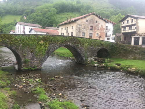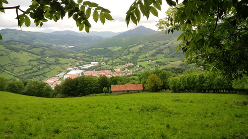 llegamos a Leitza y en un largo paseo por el pueblo al parking.