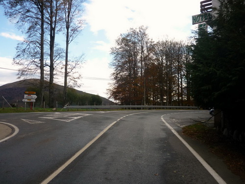 bosque, descienden hasta el parking de Ixkibar, se cruza la carretera donde hay un poste indicador se coge un