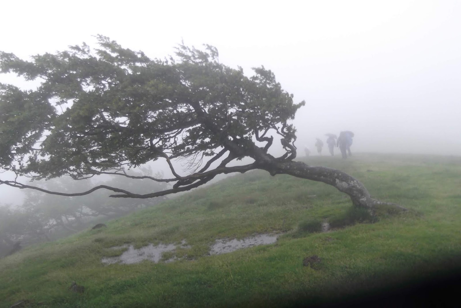 Aquí bien viene la frase: «El sol sale para todos, y cuando llueve todos nos mojamos» porque así transcurrió el día, durante la marcha agua y viento y por la tarde calma nubosa.