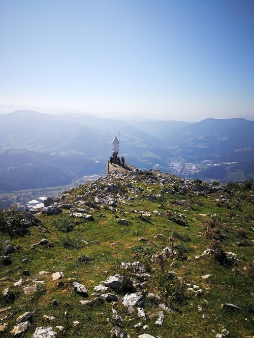a la estatua de San Ignacio) y disfrutamos de las vistas del Valle del Urola.