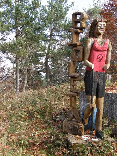 encuentra la estatua de Bioleta, siguiendo junto a la alambrada se llega a un