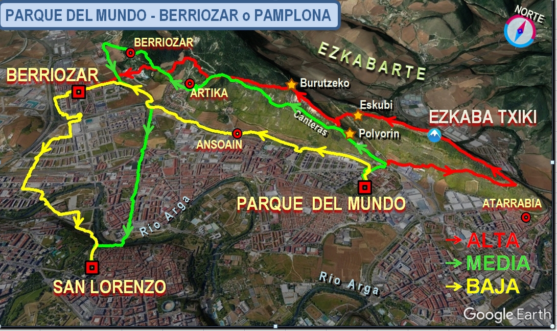 señaladas (Parque el Mundo, Ezkaba Txiki, Pamplona/Iruña; Paque el Mundo, Artica,
