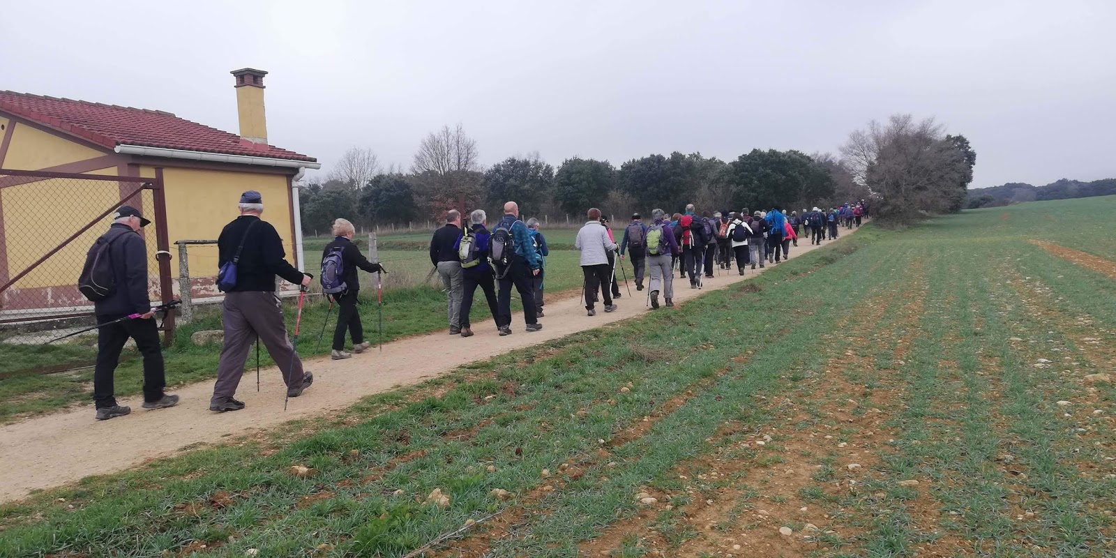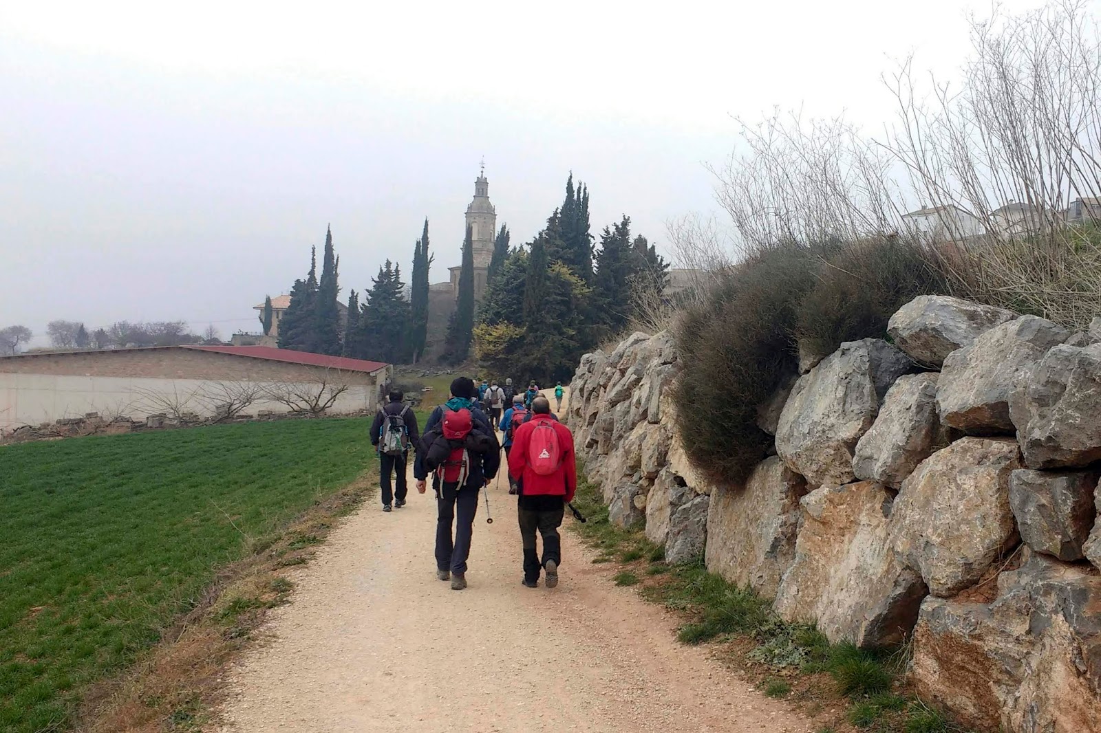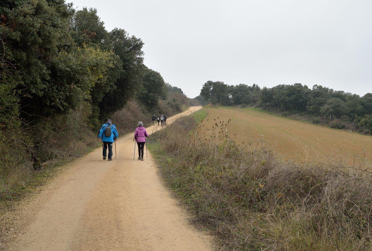 El grupo de ALTA salimos por la calle hacia el camping, giramos a la izquierda por el camino de Santiago, pasamos por Azqueta y al llegar a Villamayor de Monjardín giramos a la derecha dejando el camino de Santiago. Ascendemos por una empinada calle y giramos a la izquierda.