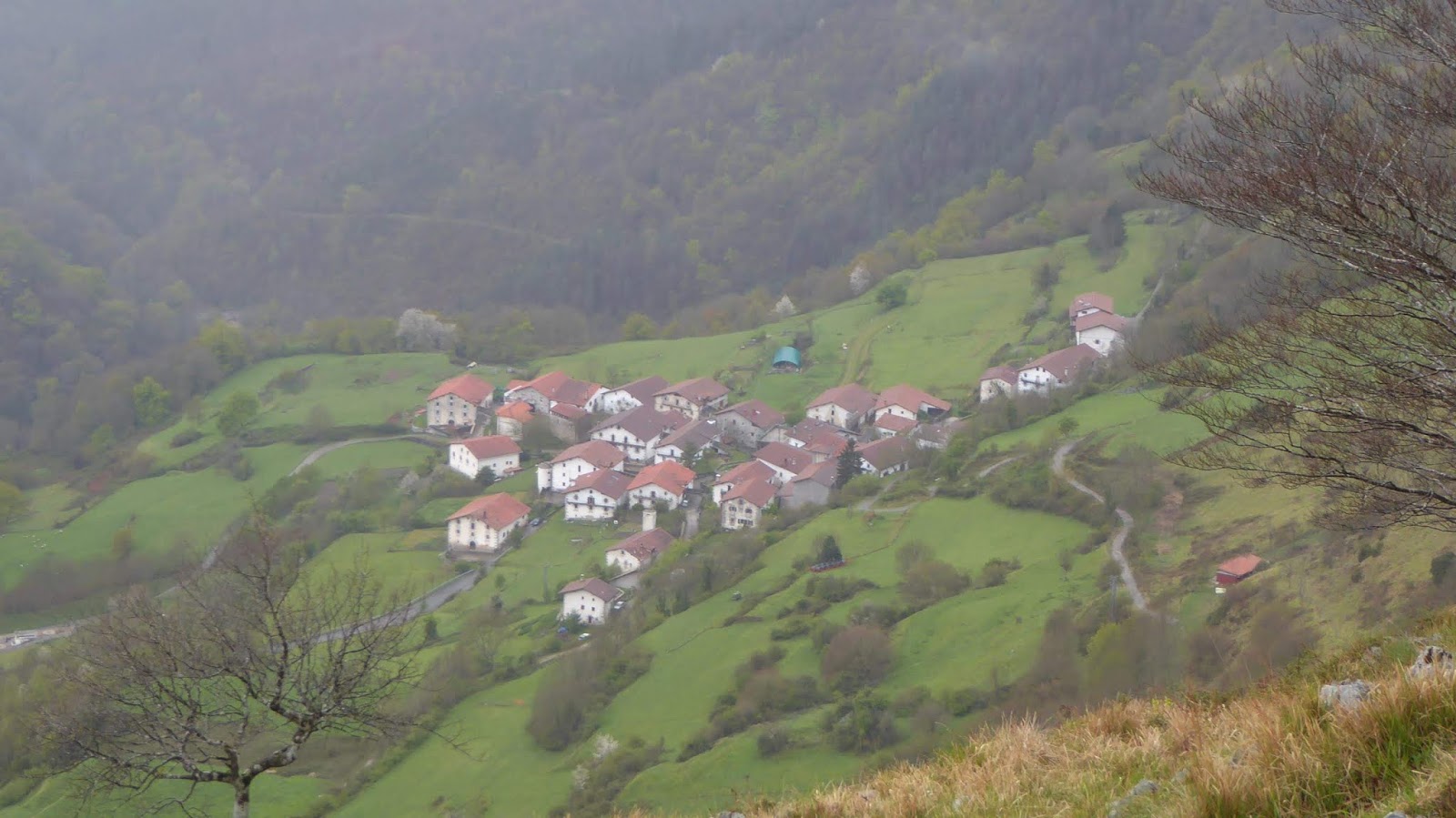 En torno a esta cima, buen lugar para almorzar, se pueden ver unas impresionantes vistas hacia la sierra de Aralar, apreciando sus majestuosas cumbres y contemplando los valles que la preceden. A continuación de relajarnos con los sentidos si la climatología lo permite, se retrocede unos metros atravesando una alambrada hacia la derecha bajando en zigzag hasta una borda restaurada donde se toma una pista de tierra, luego de cemento y después de hierba y tierra.