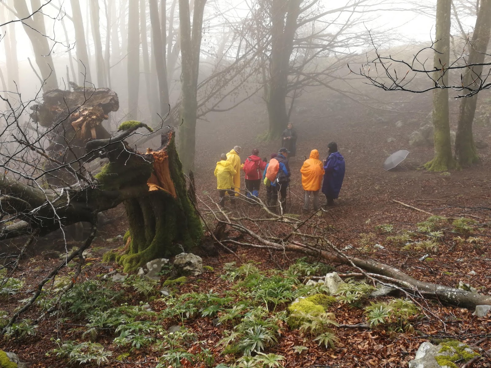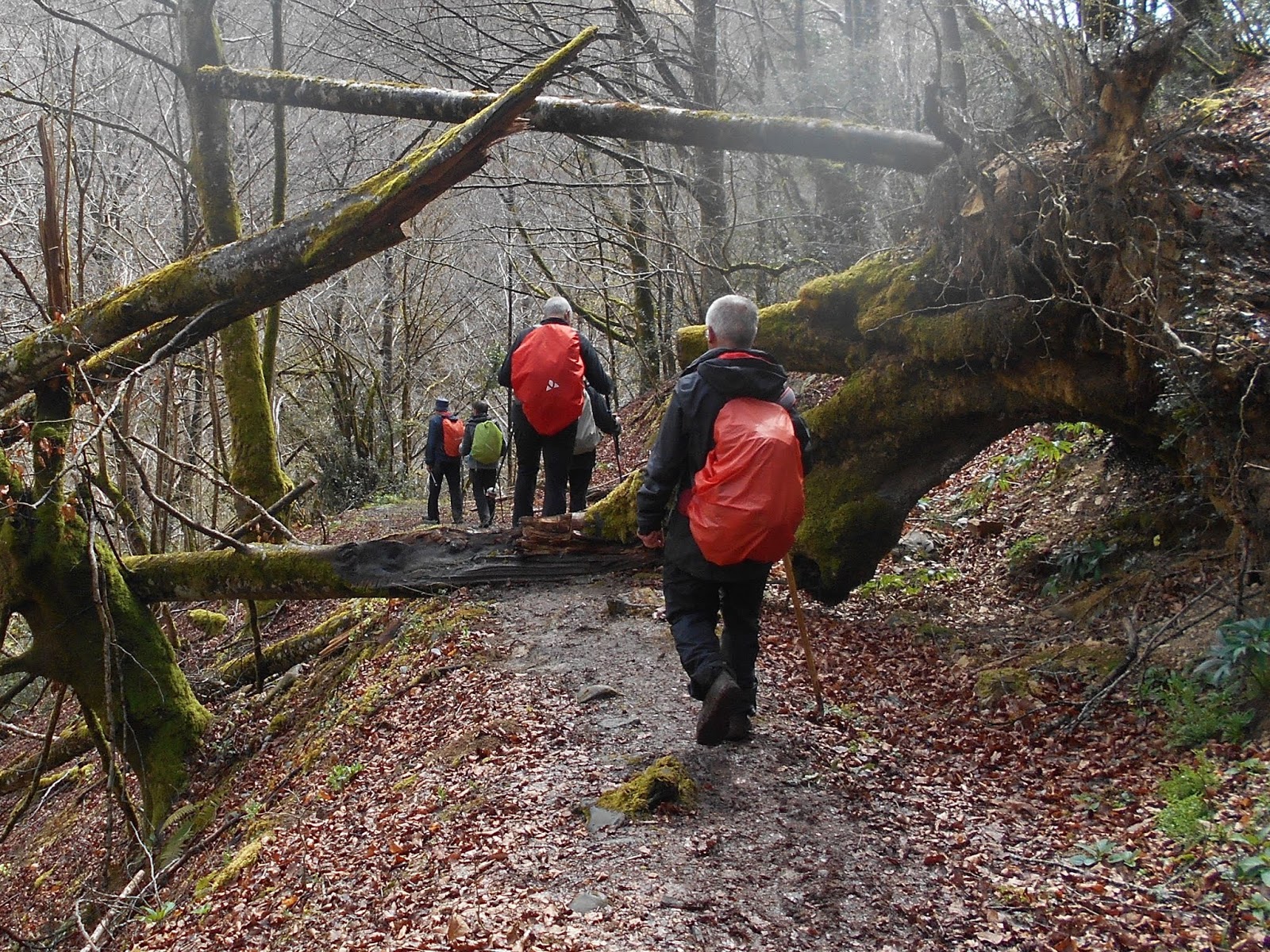 El grupo de MEDIA inicia la ruta en Gorriti saliendo por la carretera hacia Uitzi, abandonándola a los 500 m., tomando una pista de cemento a la derecha que se convierte en prado y en camino, subiendo hasta el km. 2,5, donde se atraviesa un paso de alambrada a la izquierda. Posteriormente, a través de praderas, bajo hayas y robles en un sube y baja continuo; atención a partir de ahora a las cintas y los GPS. Se llega a la dcha. de una alambrada a través de una ascensión pronunciada a la cima de la excursión: Mergelu, con 918 m. de altitud. Se desciende y se vuelve a subir al Epele con 868 m.
