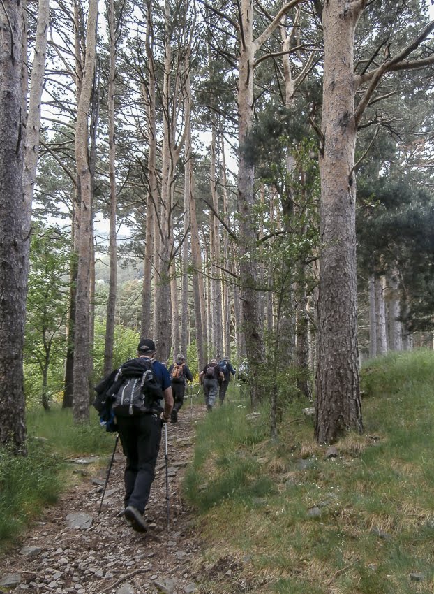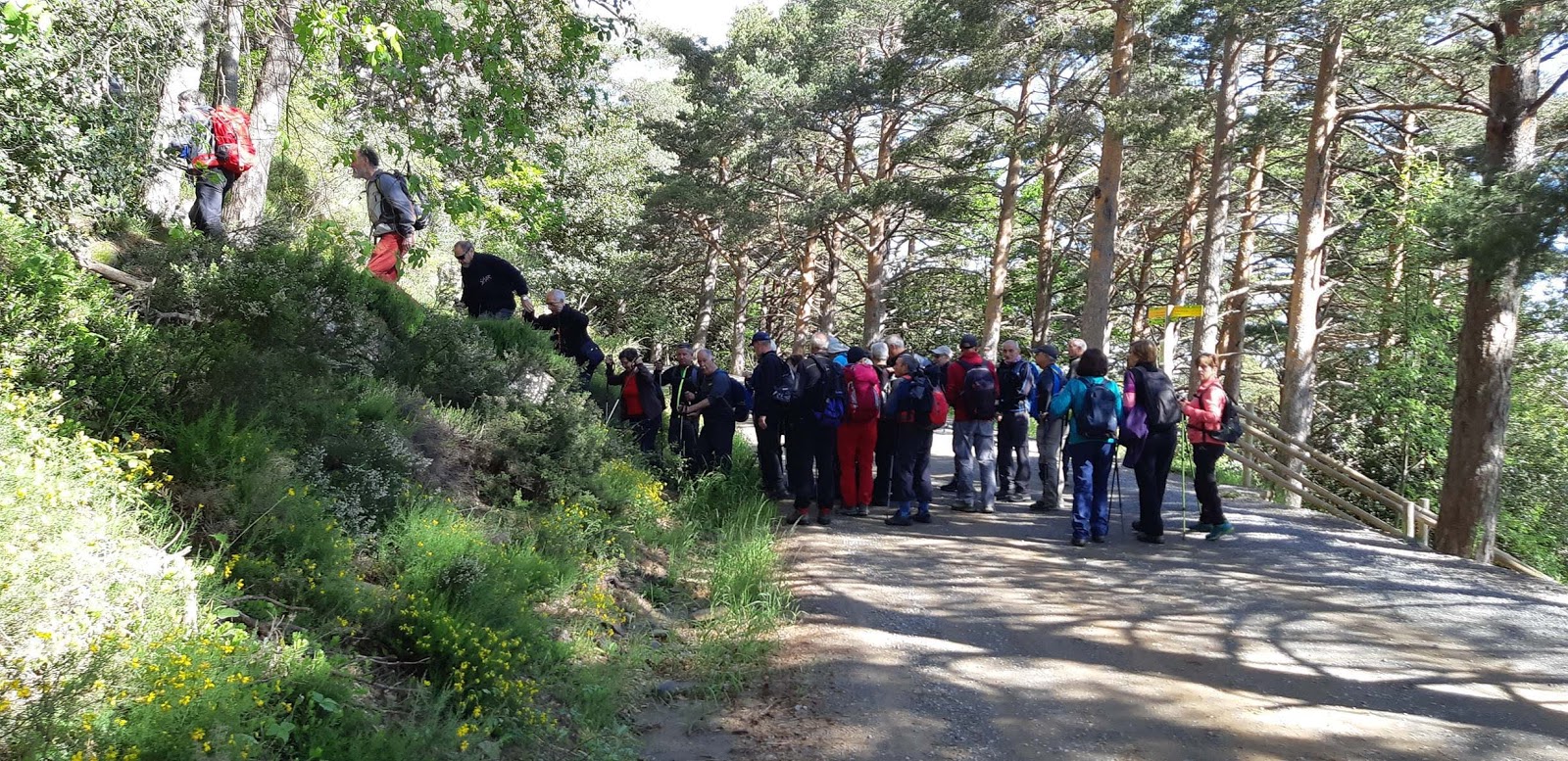 El grupo de MEDIA cogemos carretera y a unos 400 m. gira a la izquierda y siguiendo las marcas GR 90 con marcas roja y blanca.