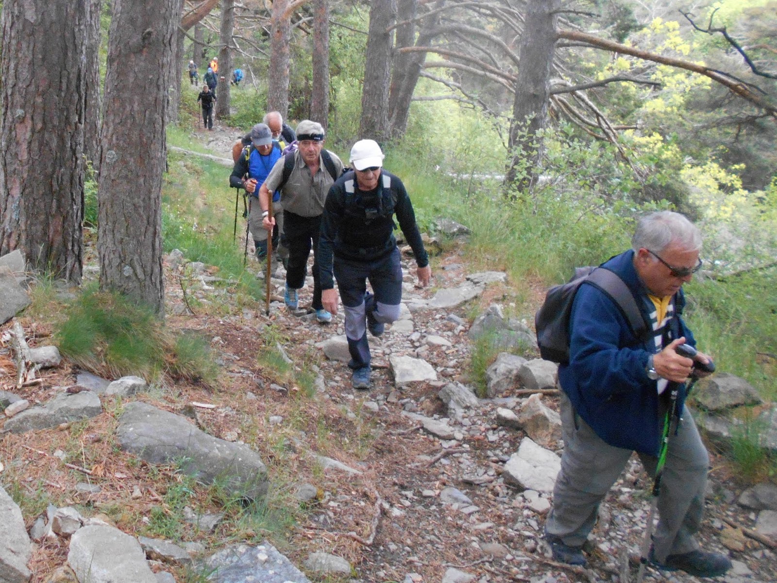El grupo de ALTA sale por la pista que sube hacia el Santuario, a unos 400 m. toma una senda que es un atajo para coger, un poco más arriba, la GR-90 que la sigue hasta pasado el Santuario, gira a la derecha dejando la GR-90.