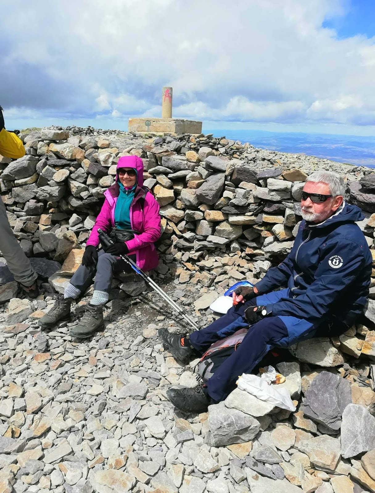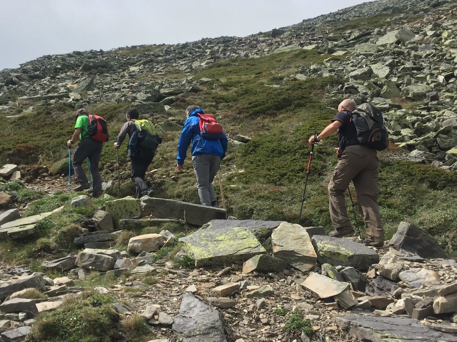 Arriba, en la cima, hubo que abrigarse por la temperatura y el cierzo. Pero durante la caminata algunos Aitonak iban cómodos con pantalón corto y una sencilla camiseta. El sol nos acompañó casi todo el día.