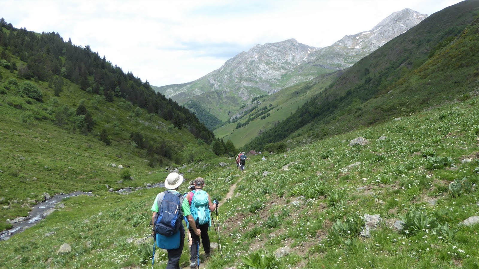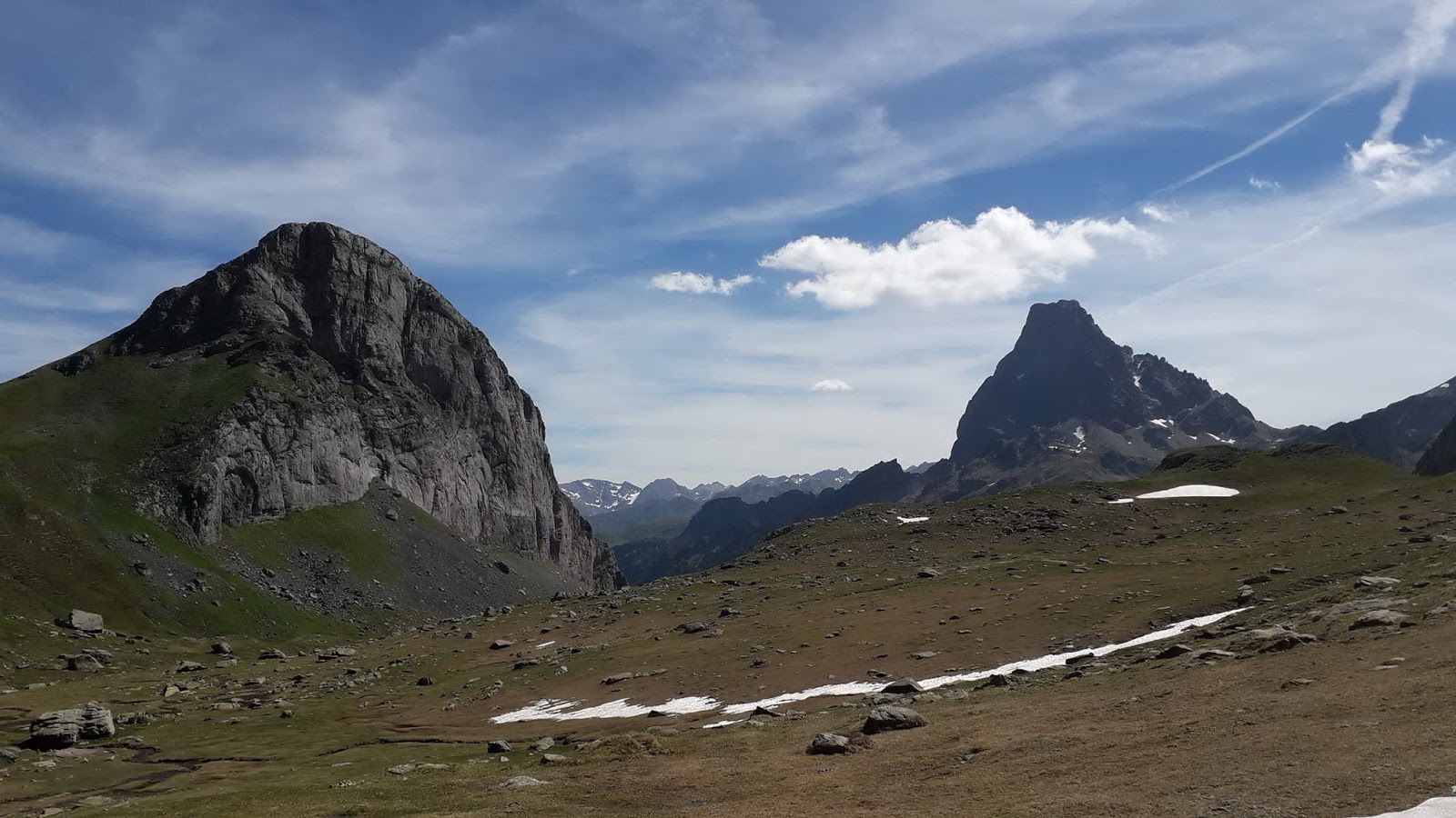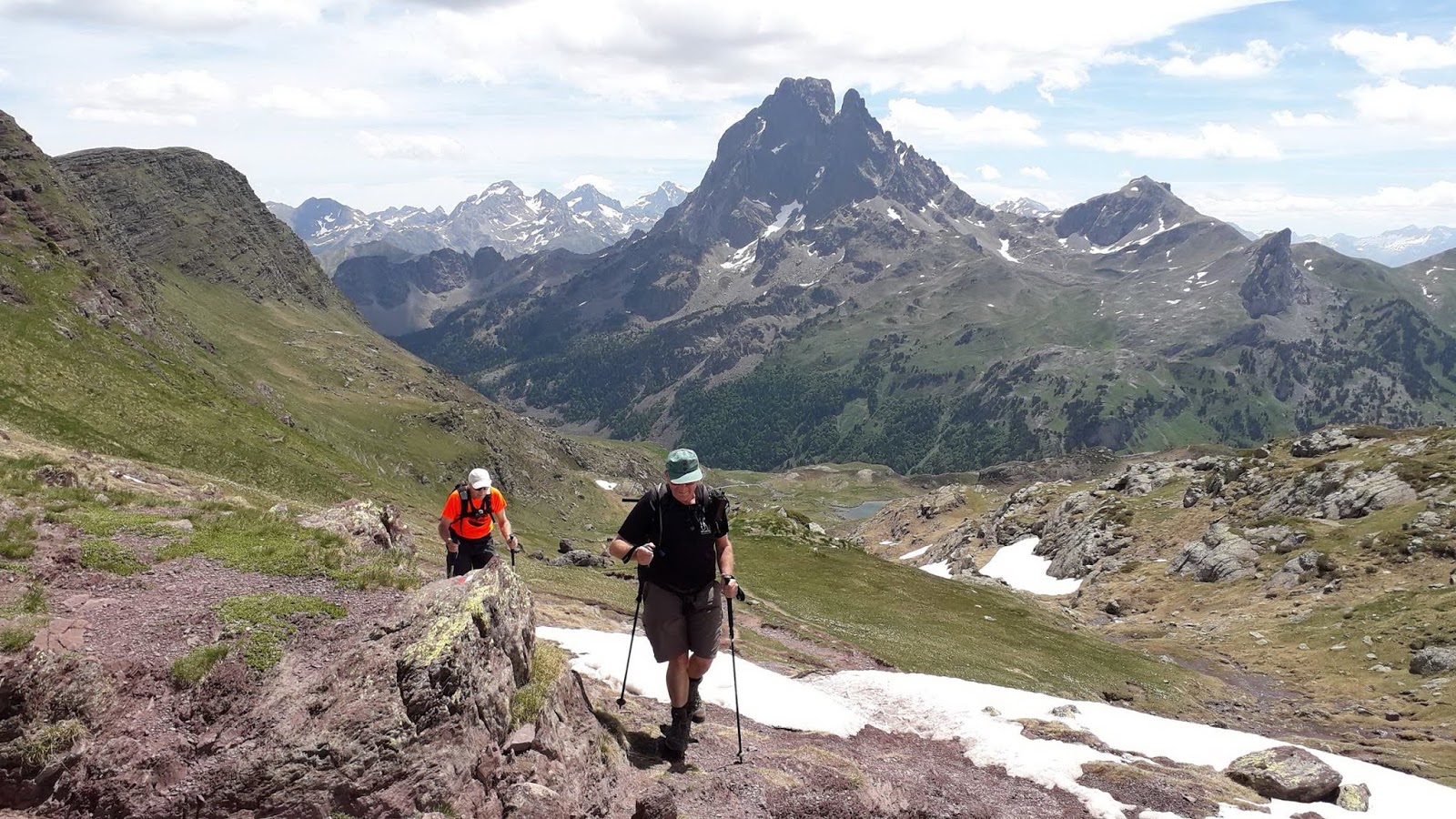 vistas: el Midi d´Ossau (2.886 m.) y unos cuantos tresmiles. Desciende