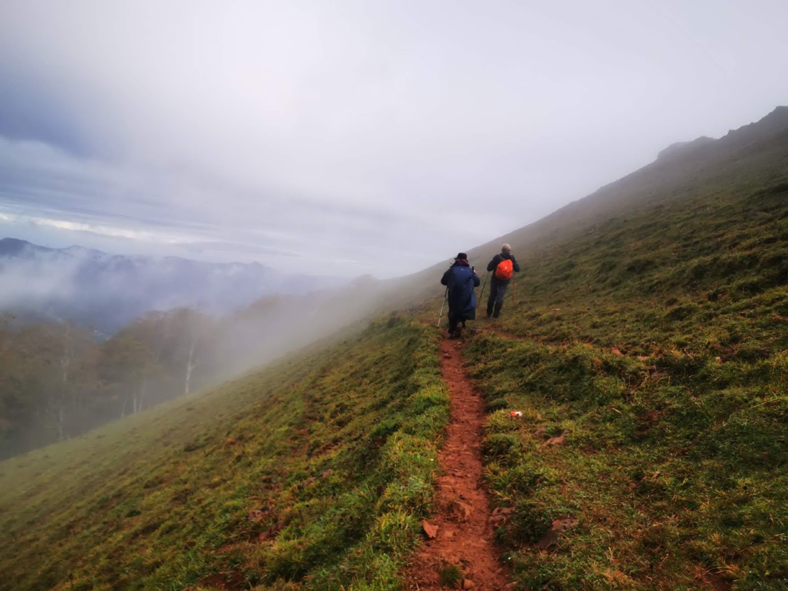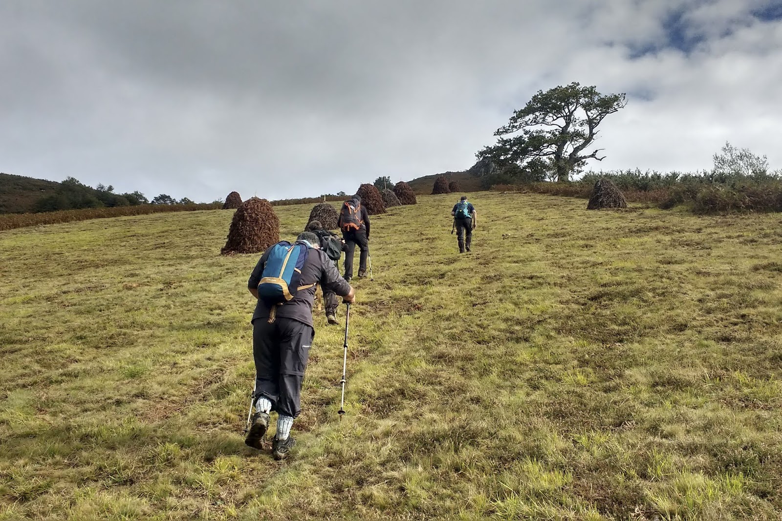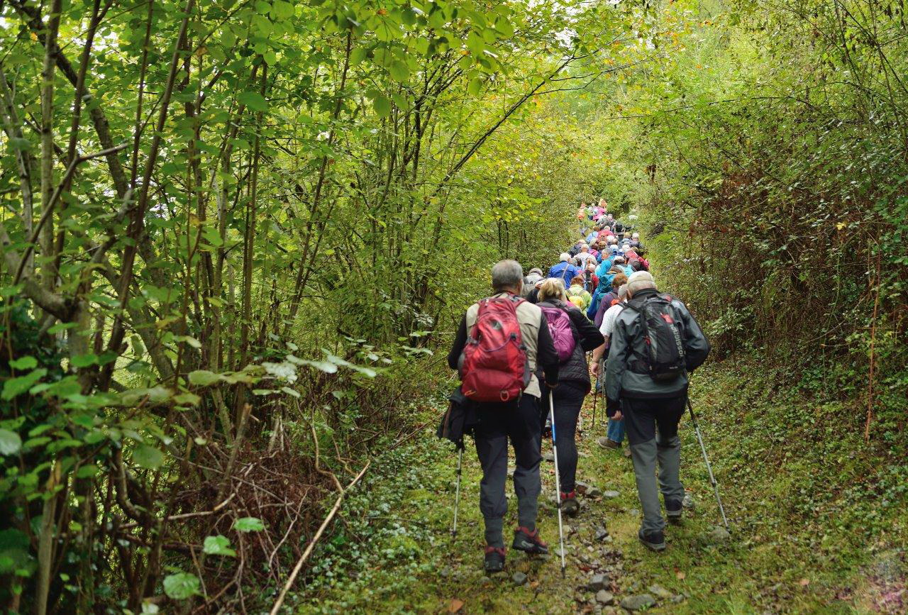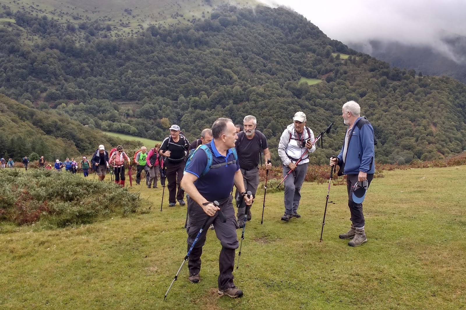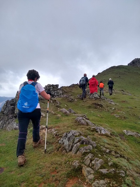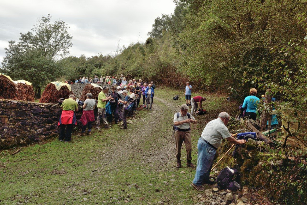 Mochila con la capa, gorro, paraguas y las botas con polainas y expectativas de lluvias luego el día nos fue respetando y como veremos en las fotos se caminó en mangas cortas y se disfruto de unas bonitas marchas.