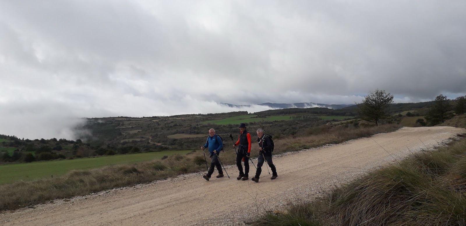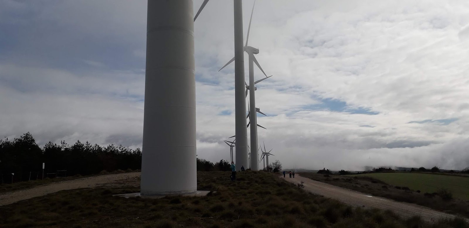 Un día casi de primavera comparado con el día anterior que en la sierra de Izco estuvo nevando, barro algunas zonas con niebla pero al transcurso de la mañana fue apareciendo el sol, con temperatura buena para poder sudar y disfrutar de una marcha bonita, entre el canto de los molinos de viento.