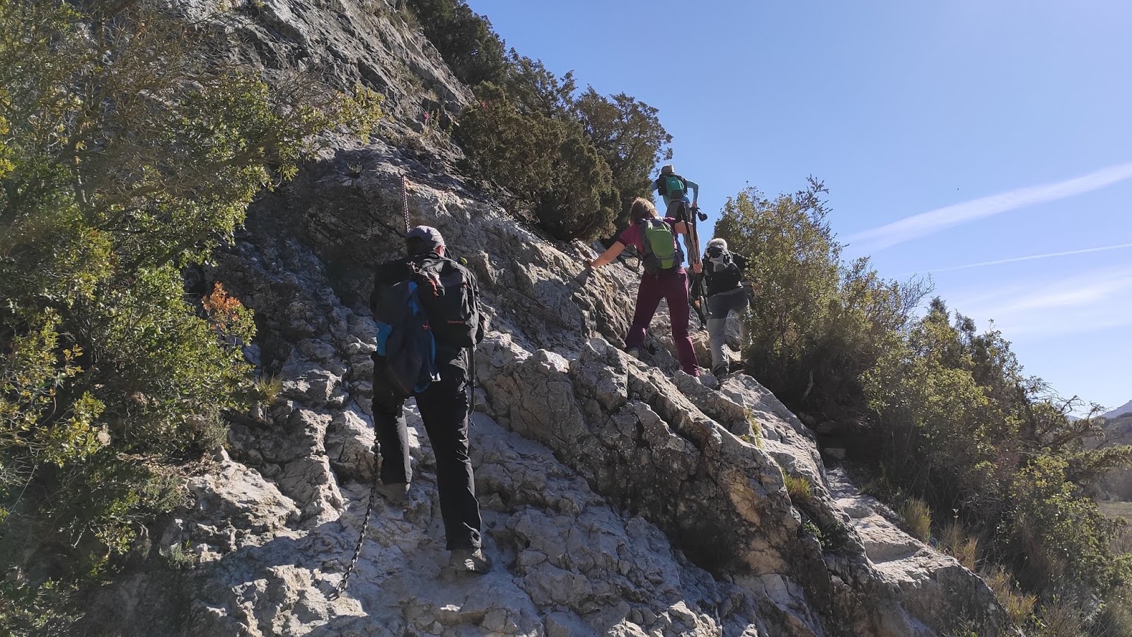 Volvemos sobre nuestros pasos para seguir ruta hacia Liedena, siempre siguiendo las marcas del sendero local verdes y blancas. Nos vamos acercando a Liedena girando a la izquierda iniciamos el retorno empezando a subir una pronunciada pendiente por encima de los túneles.