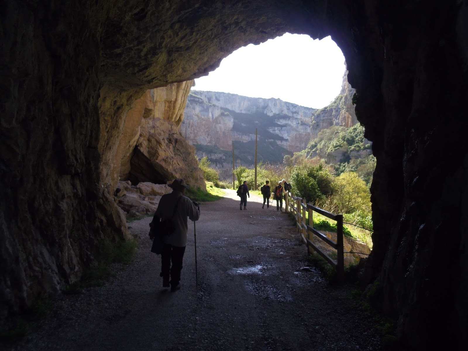Unas veces por senda, caminos, olivos, campos de almendros, con bonitas vistas. Nos dirigimos hacia la entrada al parque primero por pista, luego a la izquierda cogemos senda bajando con bastante pendiente hasta el merendero, en el que retornamos hasta Lumbier donde nos esperan los Autobuses. Kilómetros: 10,65 km.