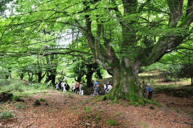 En los dos últimos kilómetros se ha tenido que salvar mucho desnivel. Aquí nos esperaban los autobuses para trasladarnos a Lekumberri.