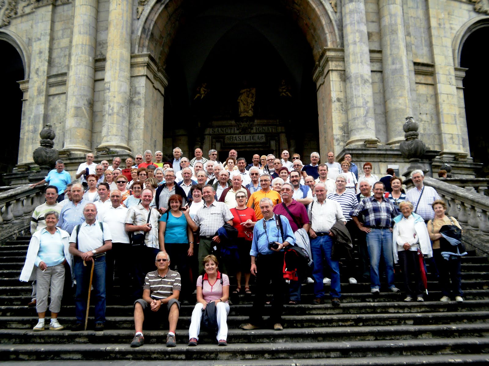 Comemos en el restaurante Uranga. Nos queda tiempo para hacer un relajante paseo por el parque y alrededores. El jesuíta, Padre Javier Zudaire, navarro, nos da una amplia explicación de la basílica . A la salida nos sacamos una estupenda e histórica foto de casi todo el grupo.