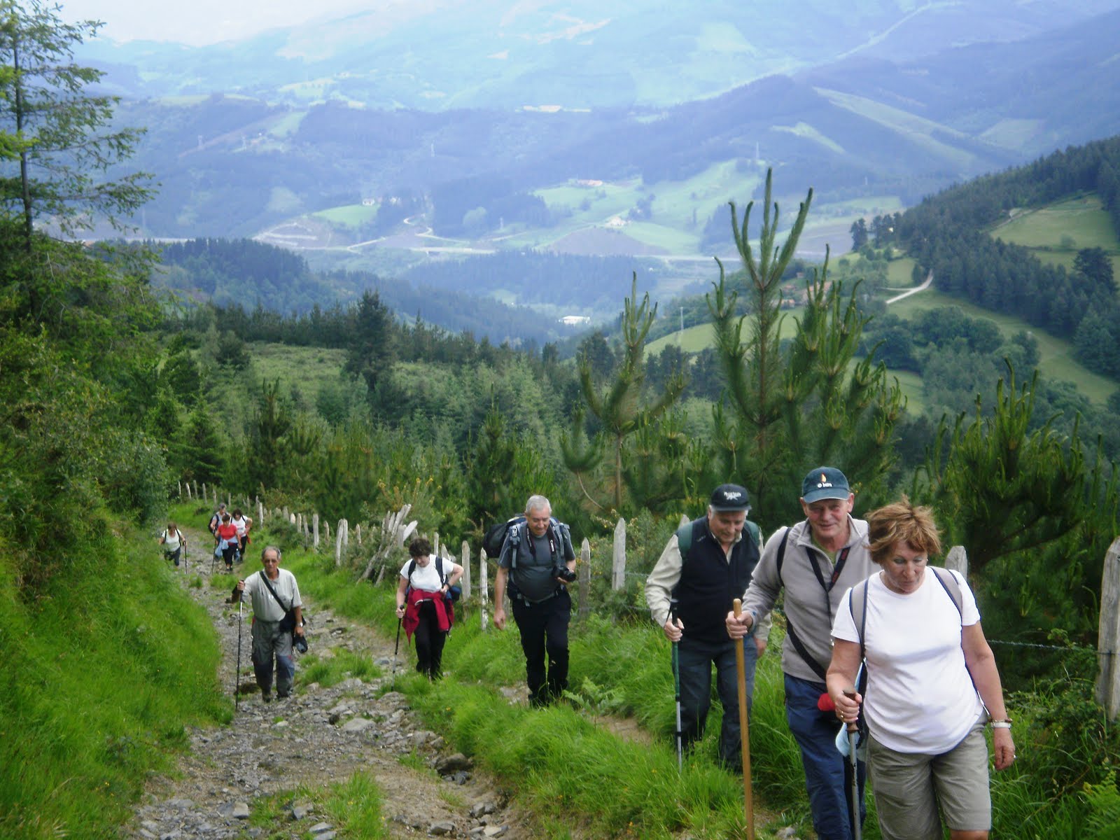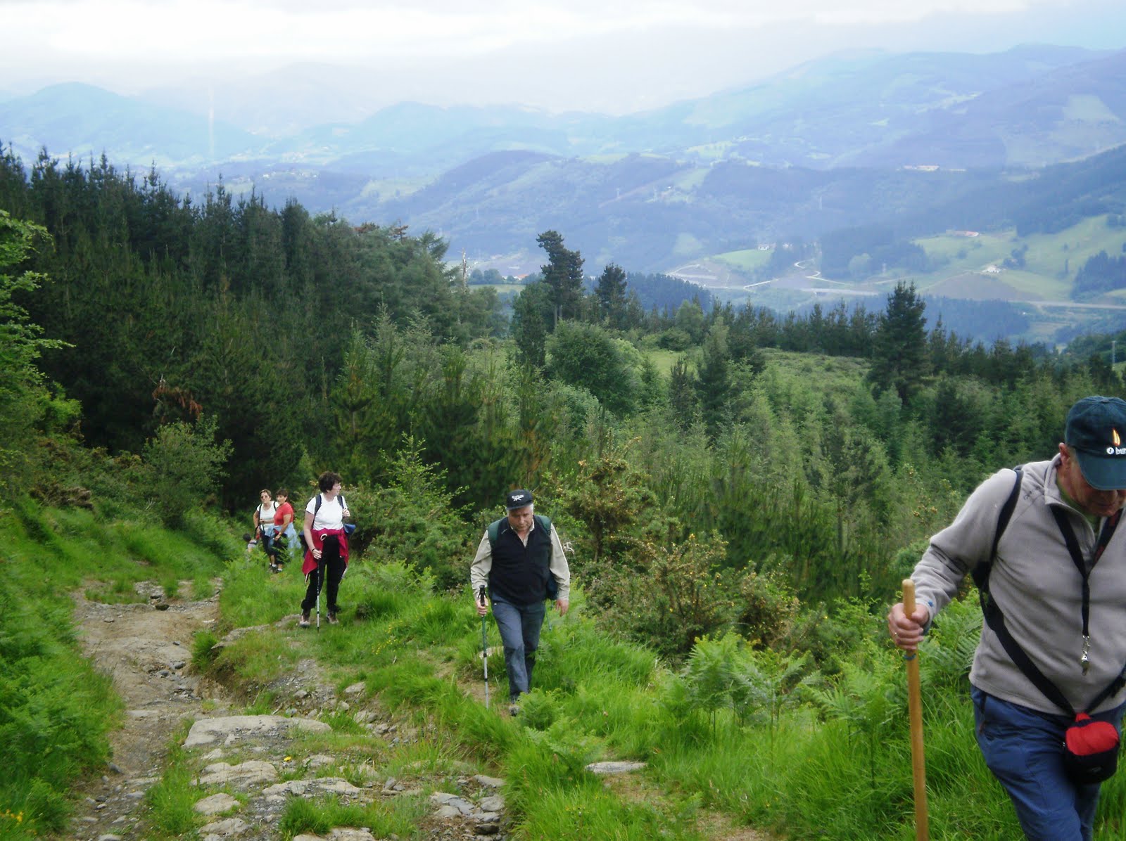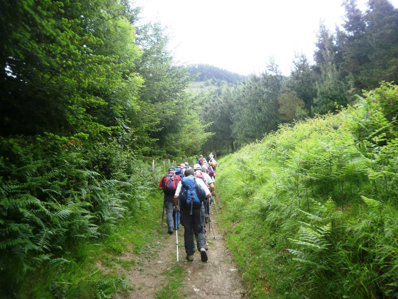 Reagrupados todos , hemos emprendido nuestras rutas. Los De Montaña y Media hemos partido desde el santuario siguiendo el GR hacia el collado de Izazpi. Aquí nos separamos los dos grupos. Los de Montaña han subido a Izazpi para regresar luego al GR y por él llegar a la txabola de Pagotxeta para seguir dirección al Samiño. Luego han buscado el camino del GR y por detrás de los de Media llegar a Loyola.