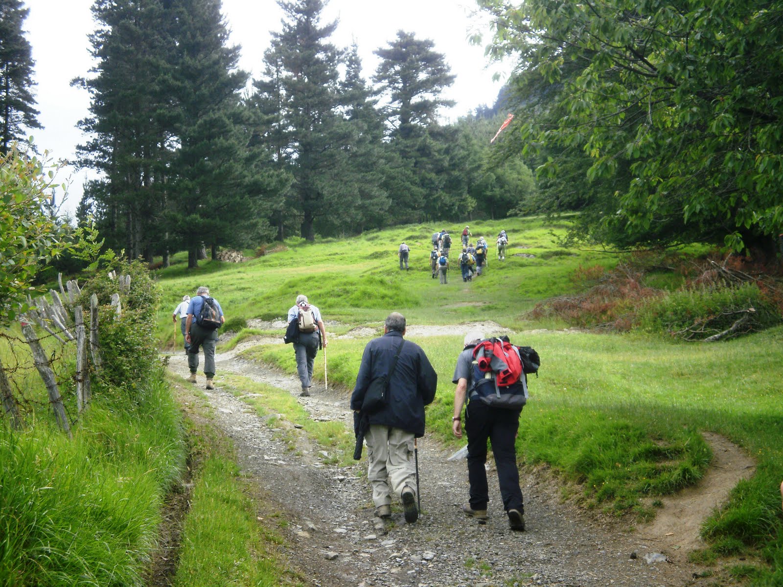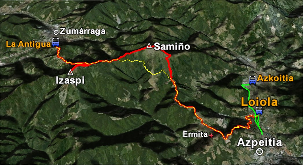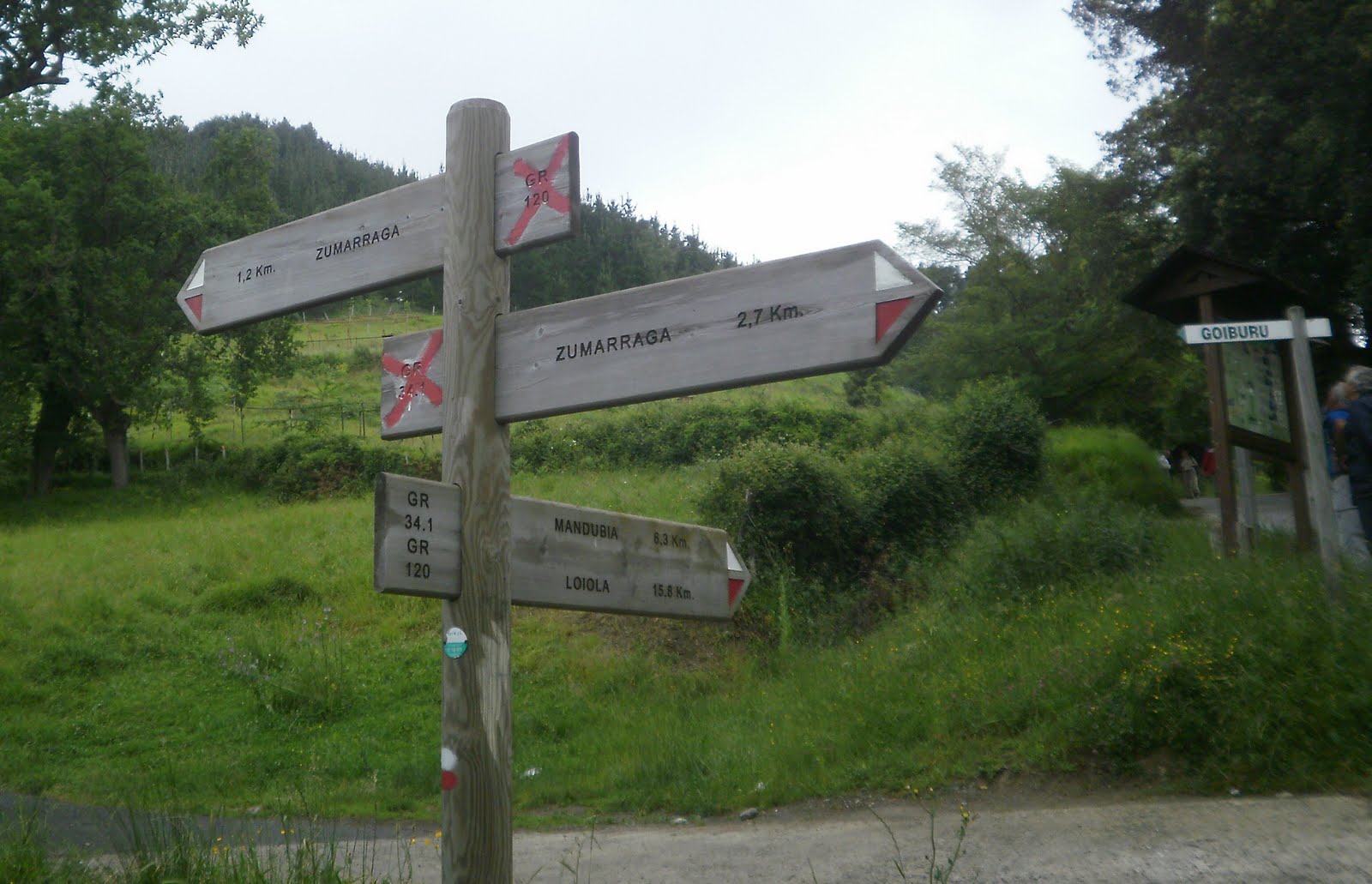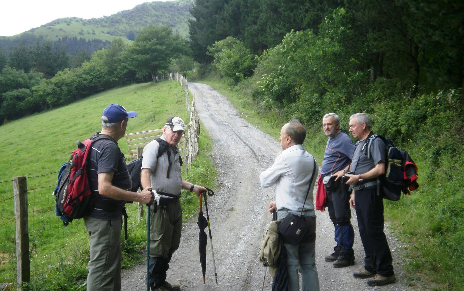 Reagrupados todos , hemos emprendido nuestras rutas. Los De Montaña y Media hemos partido desde el santuario siguiendo el GR hacia el collado de Izazpi. Aquí nos separamos los dos grupos. Los de Montaña han subido a Izazpi para regresar luego al GR y por él llegar a la txabola de Pagotxeta para seguir dirección al Samiño. Luego han buscado el camino del GR y por detrás de los de Media llegar a Loyola.