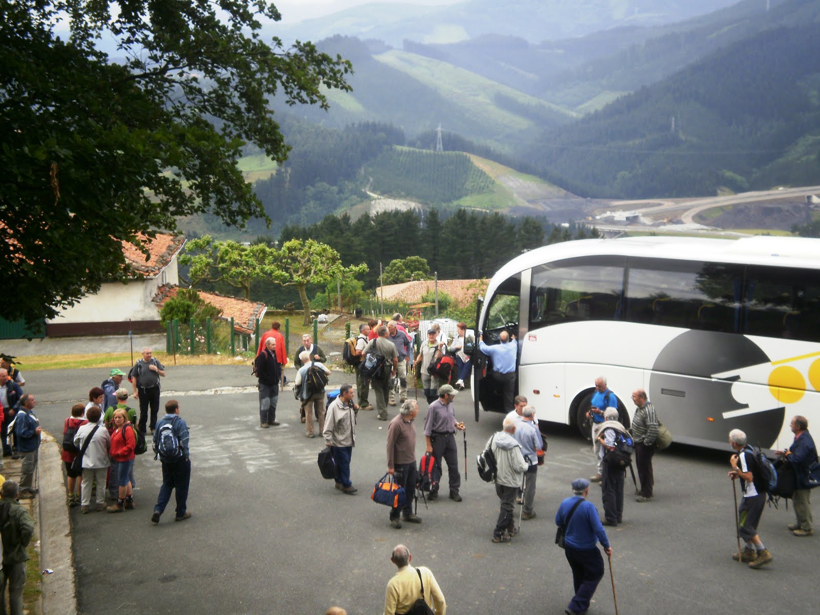 Los autobuses nos han llevado por la Sakana a Zumárraga hasta el santuario de Nuestra Señora de la Antigua. Uno de ellos ha sufrido una avería mecánica antes de Zumárraga y ha tenido que descender uno de los otros dos a recoger al personal. Este percance ha trastocado un poco los planes de las excursiones de cada grupo debido al tiempo perdido.