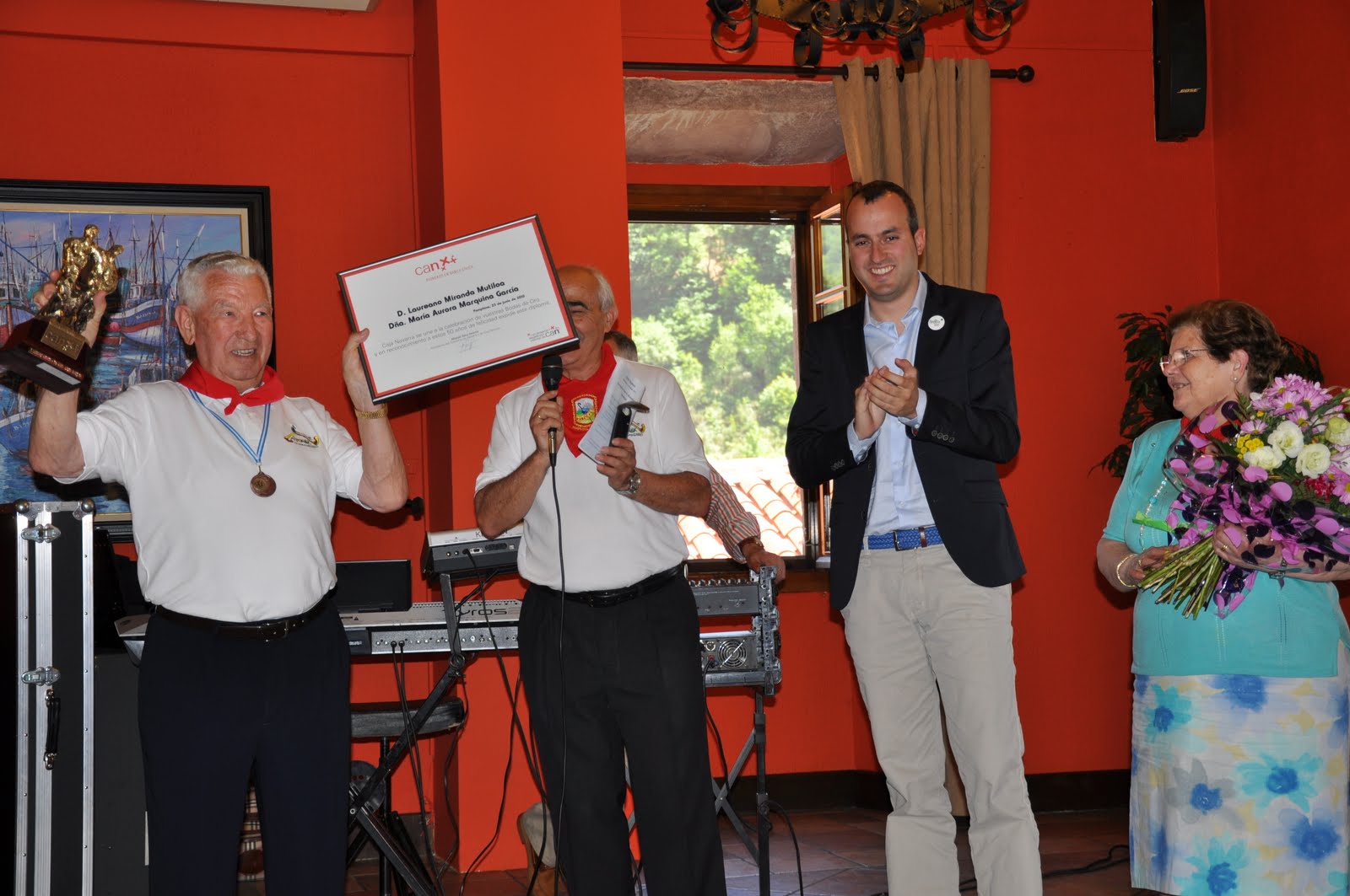 En el Restaurante Beola tuvímos nuestra comida de hermandad en la que se homenajeó a D. Laureano Miranda y señora, Dña. Mª Aurora Marquina en sus bodas de oro matrimoniales . A ellos: ¡enhorabuena! Y a todos : ¡feliz verano! Nos vemos el último miércoles de Agosto