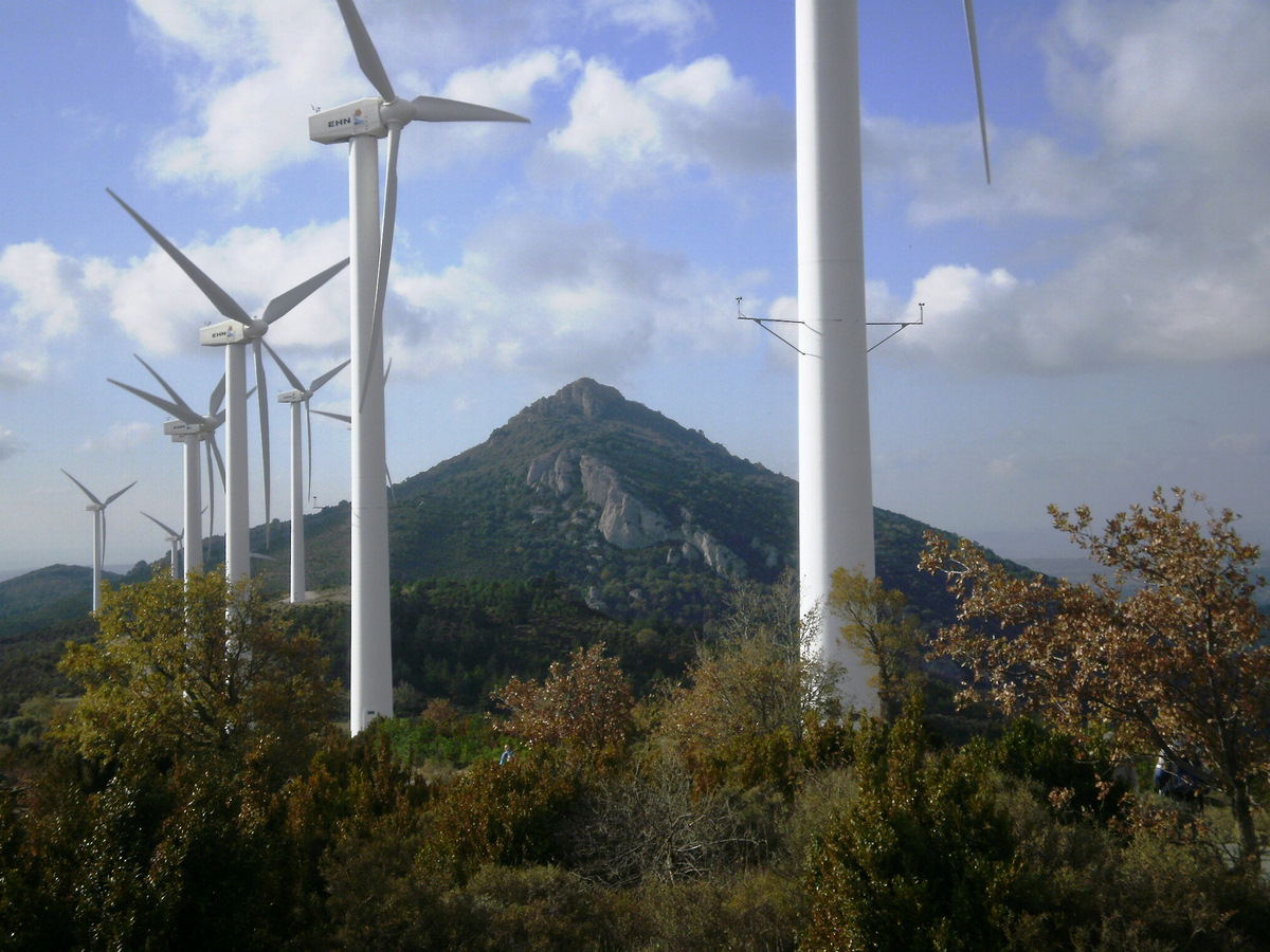Las crestas circundantes están pobladas de «molinos» o aerogeneradores que su vista y sonido nos han acompañado mucho rato.
