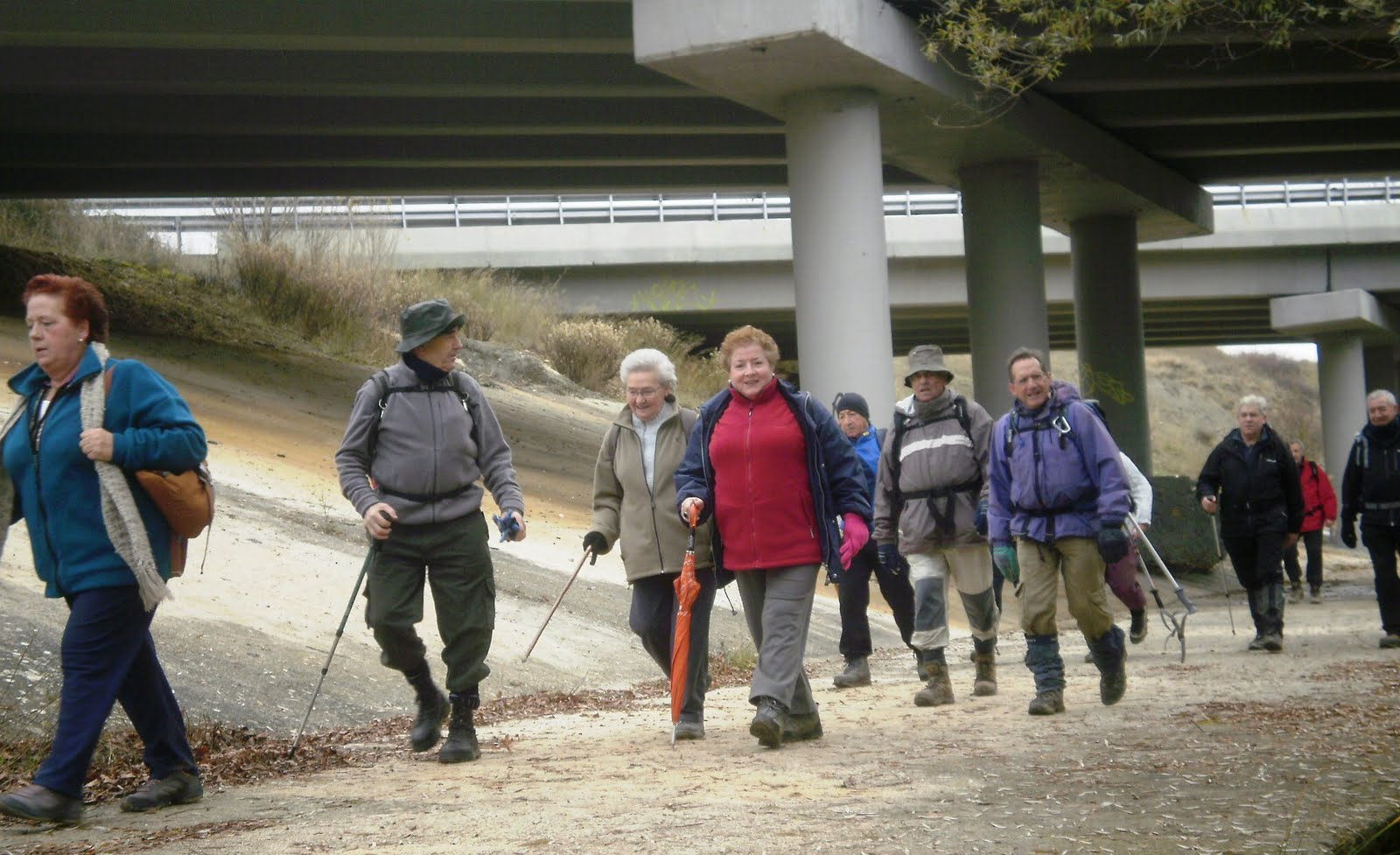 El grupo de Media antes de llegar a Imárcoain ha cogido al de Baja. Juntos han hecho la parte del recorrido por el parque fluvial del río Elorz. Camino de Noáin luce majestuoso ante nuestra vista su monumental arcada el acueducto de Noáin. Prodigiosa obra de arquitectura que data del año 1790 y que llama la atención cada vez que pasas junto a él y no solamente a quien lo ve por primera vez.