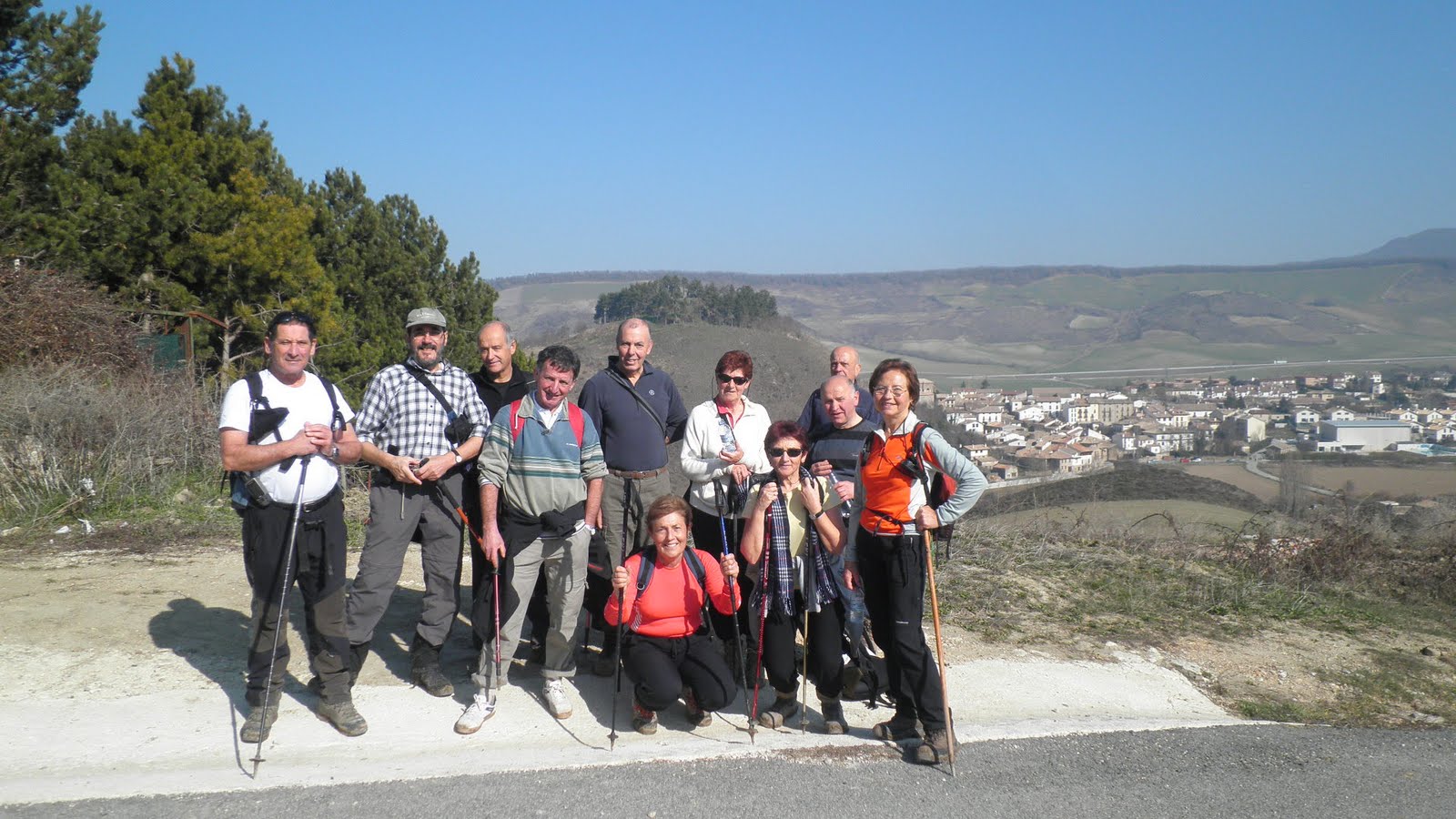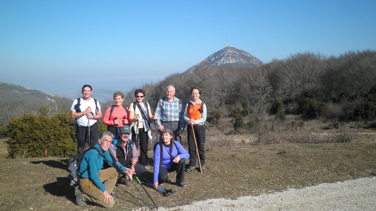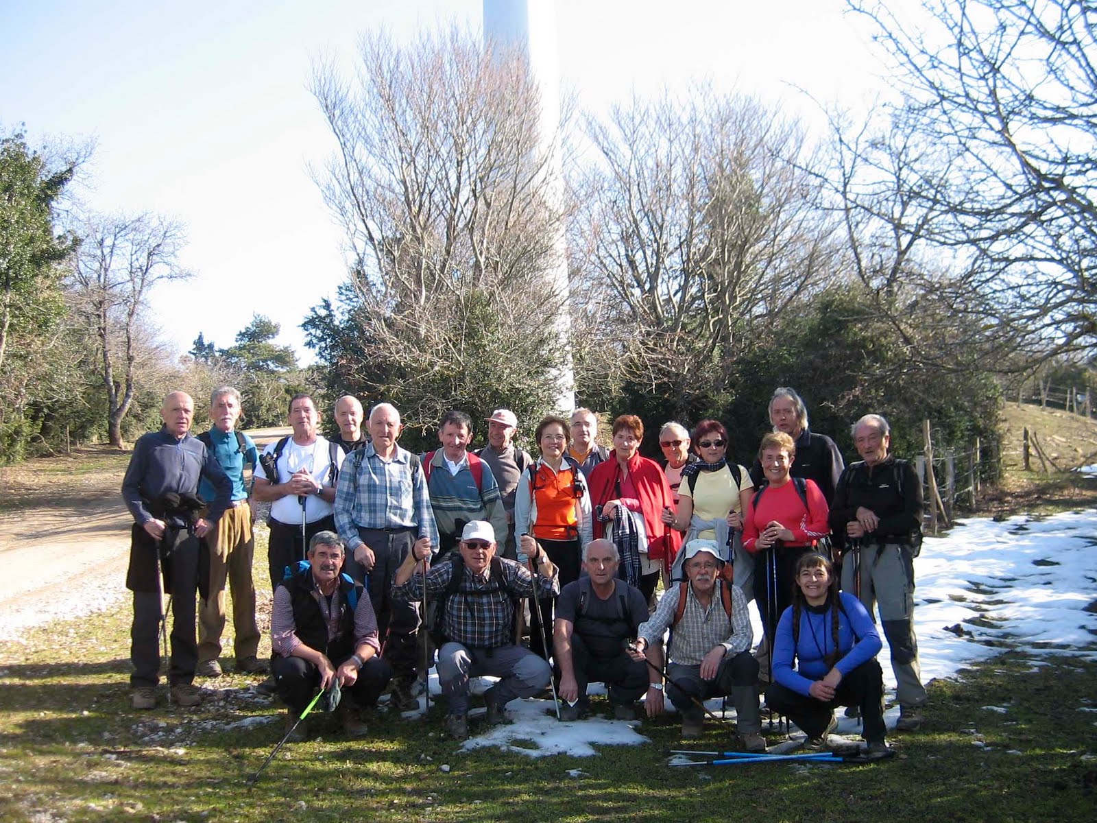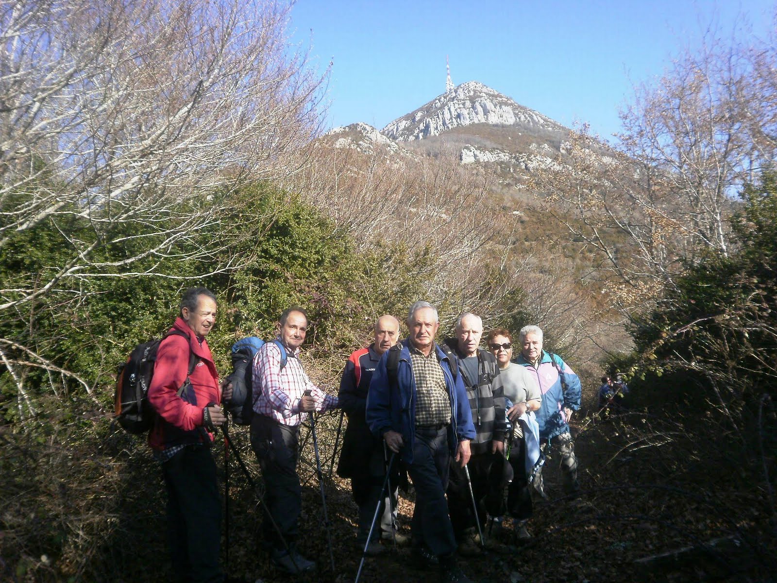El grupo de MONTAÑA, desde Etxagüe, se ha encaminado hacia la derecha para alcanzar la cima y por las crestas, pasando los eólicos y por una senda, tomar el camino que por la izquierda de la Higa les ha llevado hasta Monreal.