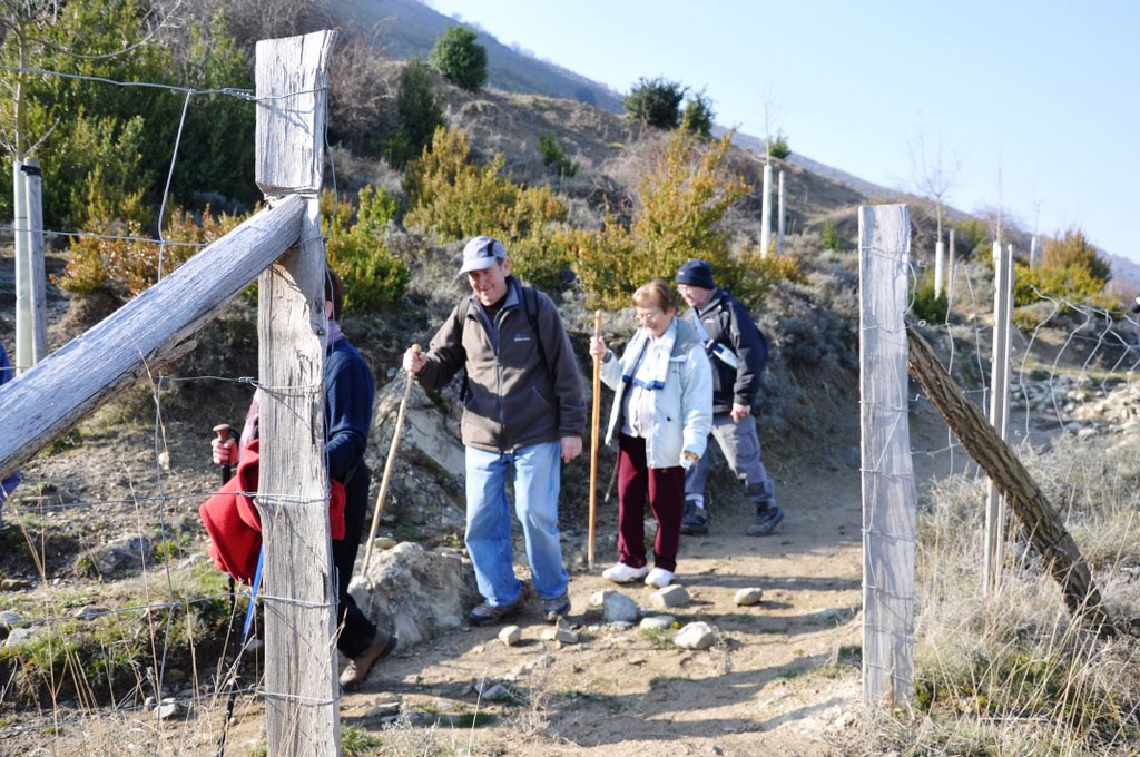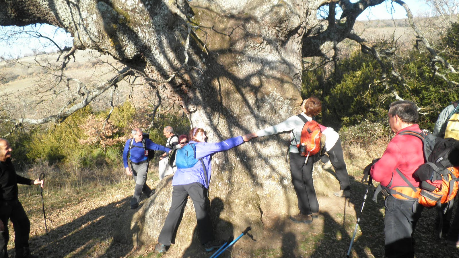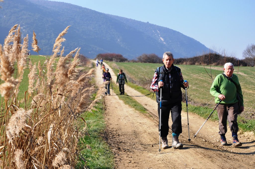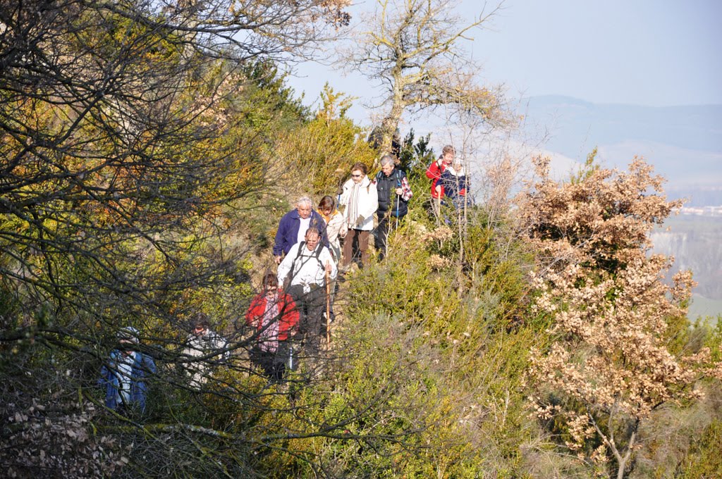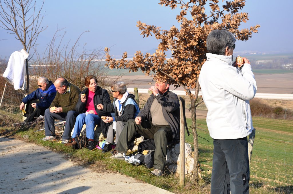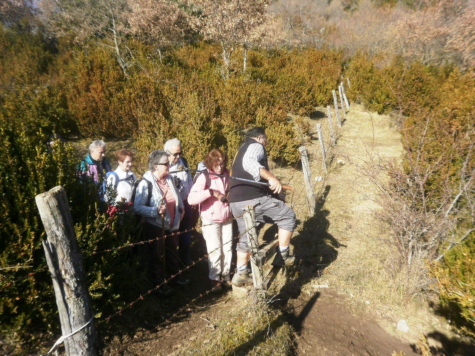 El grupo de MONTAÑA, desde Etxagüe, se ha encaminado hacia la derecha para alcanzar la cima y por las crestas, pasando los eólicos y por una senda, tomar el camino que por la izquierda de la Higa les ha llevado hasta Monreal.