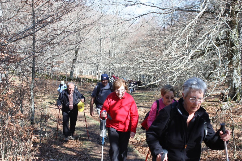 Los de MEDIA junto con el de MONTAÑA toma camino ascendente, metiéndose en los hayedos camina unos 50 minutos hasta atravesar una puerta de hierro. Pocos metros más adelante comienza el descenso primeramente por camino y después por pista llegará a Iranzu y de aquí a Abárzuza.