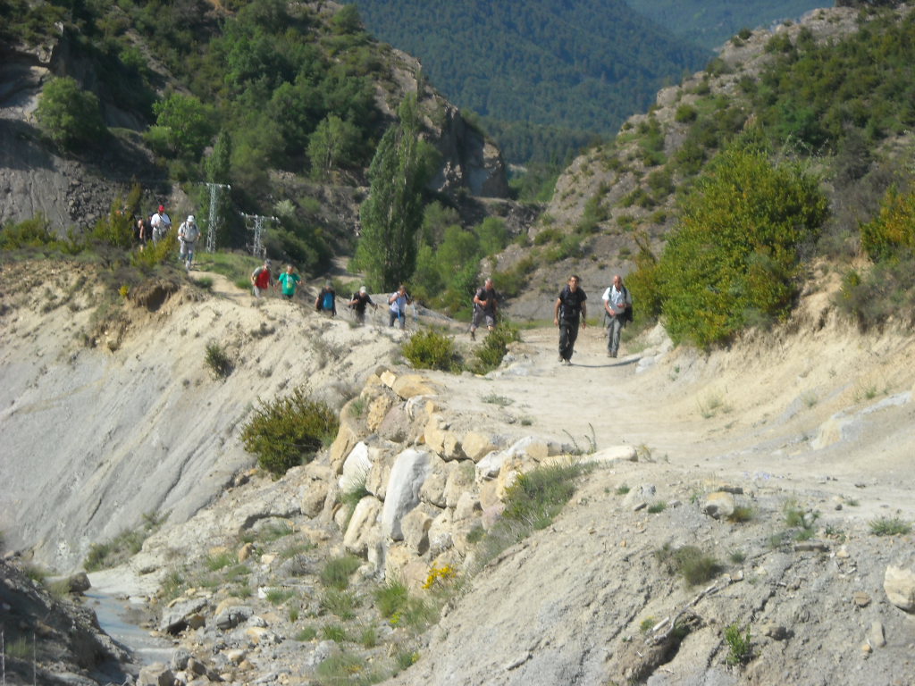El grupo de BAJA MONTAÑA, del cruce de Osán camina hacia el pueblo. De aquí a Isún de Basa, Sardás, restaurante Mi CASA y estación de autobuses.