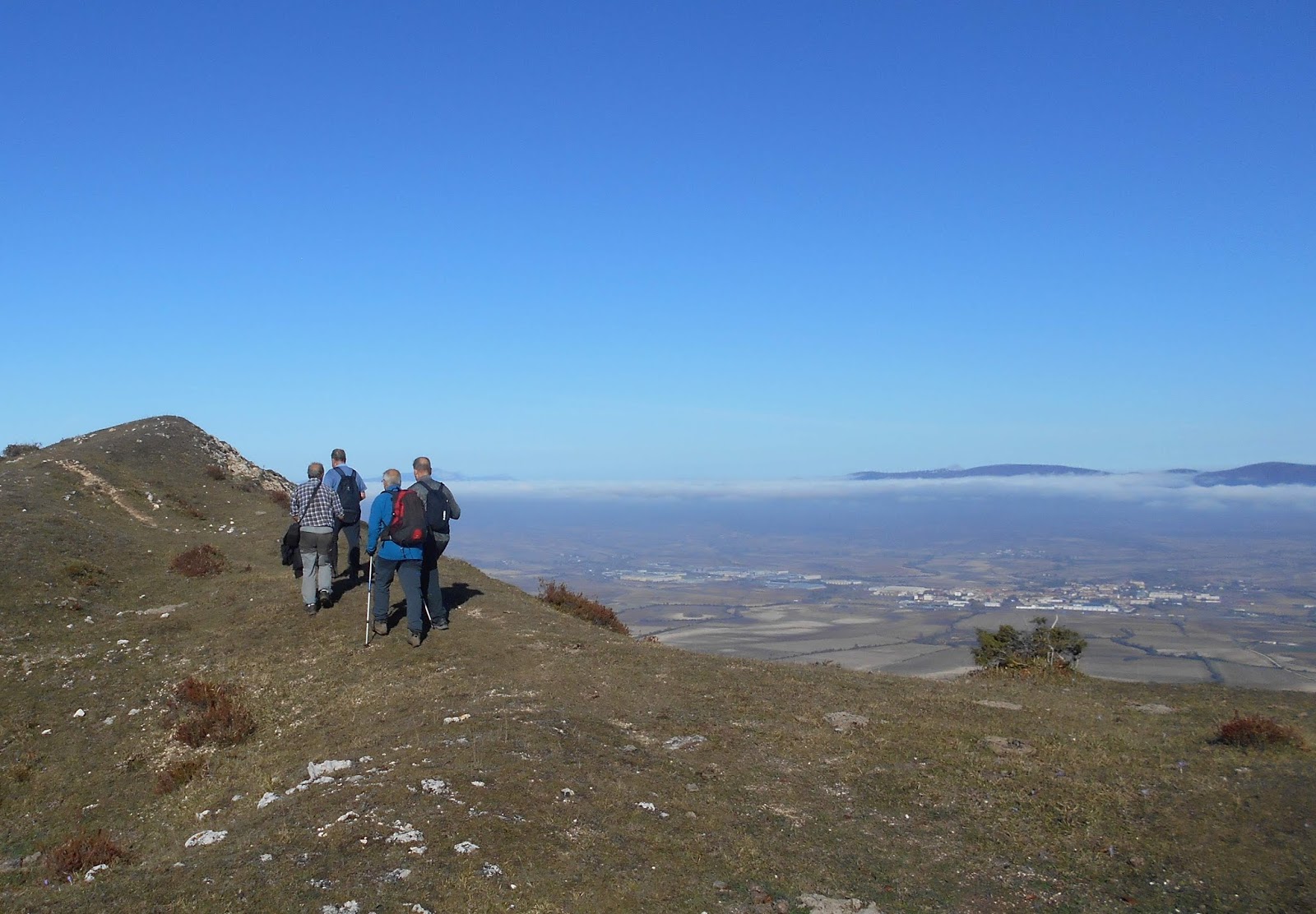 El grupo de ALTA sale del Puerto de Opacua iniciando el camino a la derecha y enseguida iniciamos un ascenso hasta la primera cima de Arrigorrista. A partir de aquí es un continuo sube y baja por el cresterío pasando por las cimas Atxurri, Larrendez, Katarri, Peña del Cura, pasamos por el collado de San Juan.