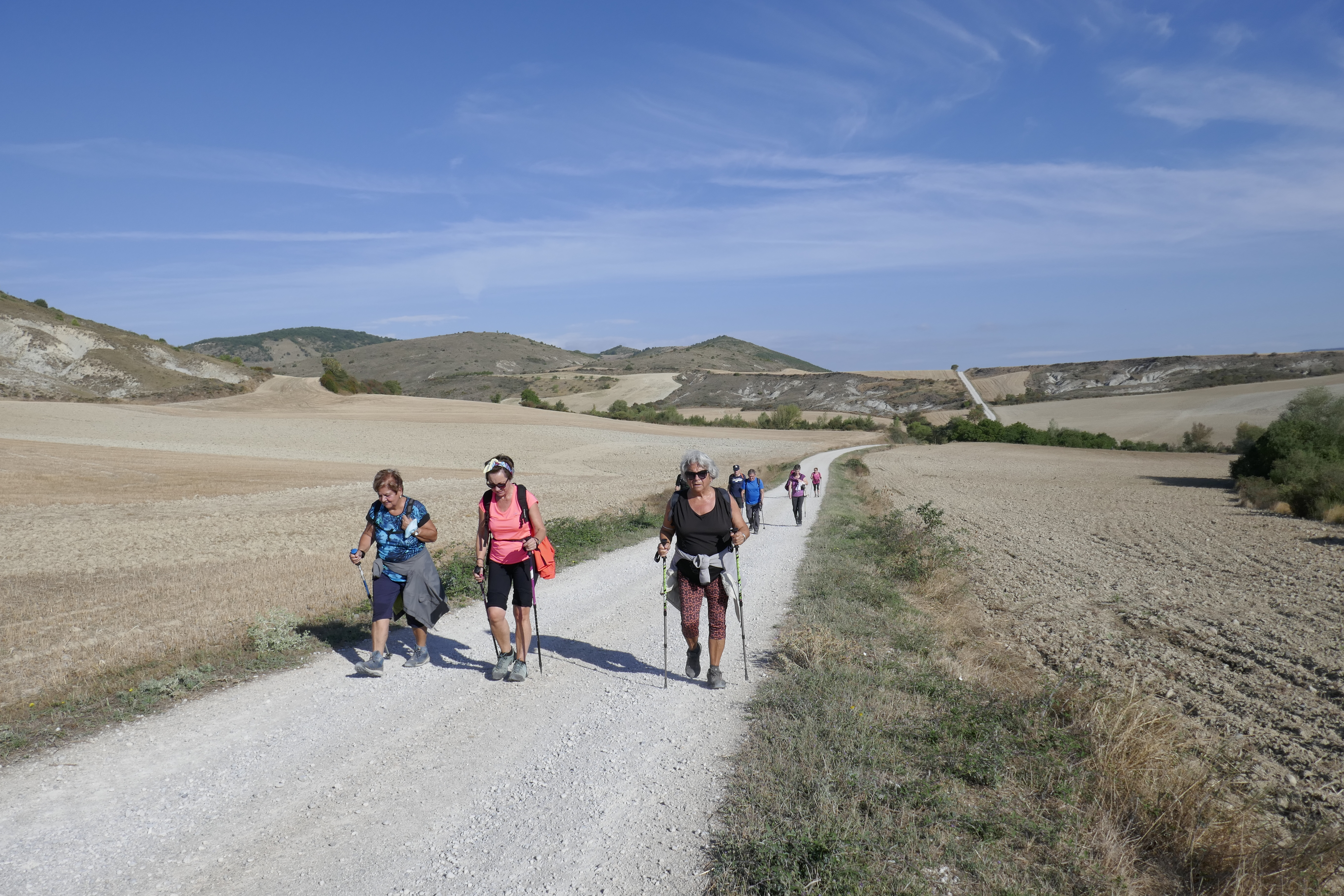 Siguiendo pista siempre rodeados de campos segados, girasoles en pena con pocas ganas de mirar al Sol.